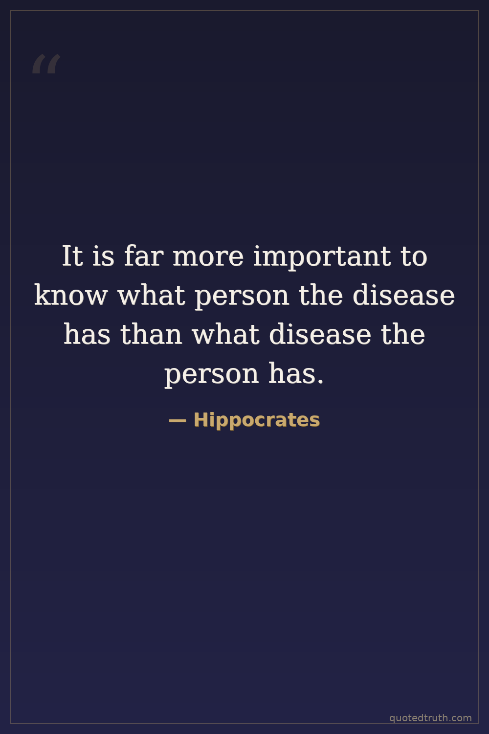 It is far more important to know what person the disease has than what disease the person has.