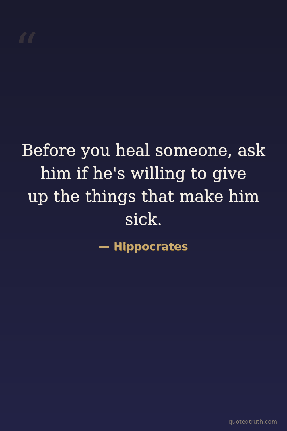 Before you heal someone, ask him if he's willing to give up the things that make him sick.