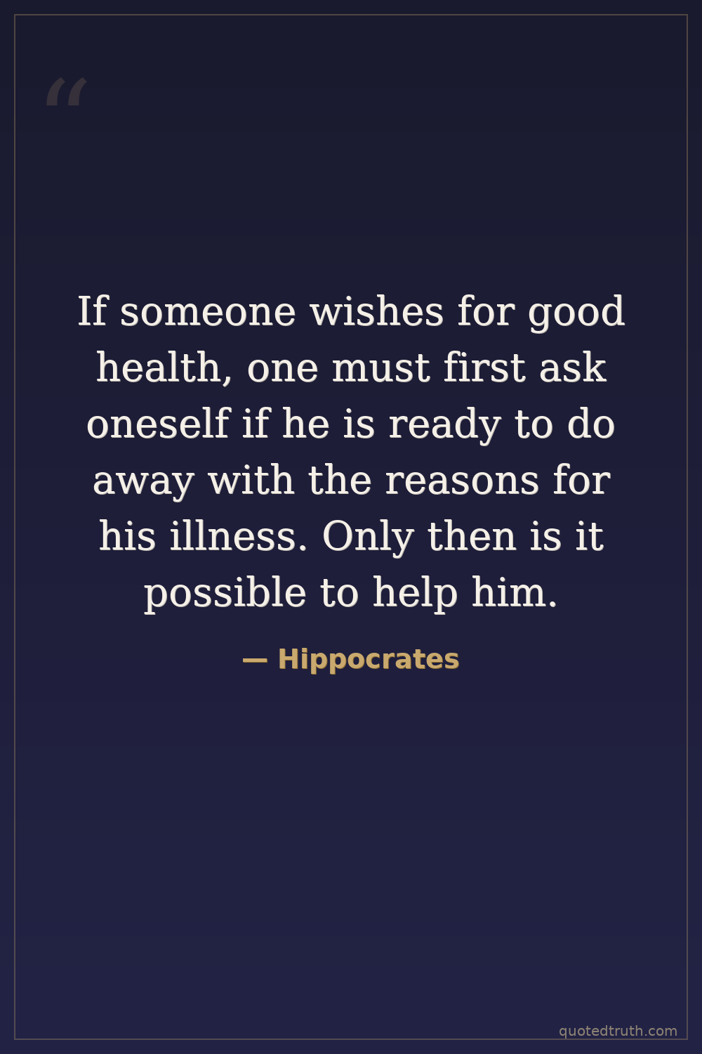 If someone wishes for good health, one must first ask oneself if he is ready to do away with the reasons for his illness. Only then is it possible to help him.