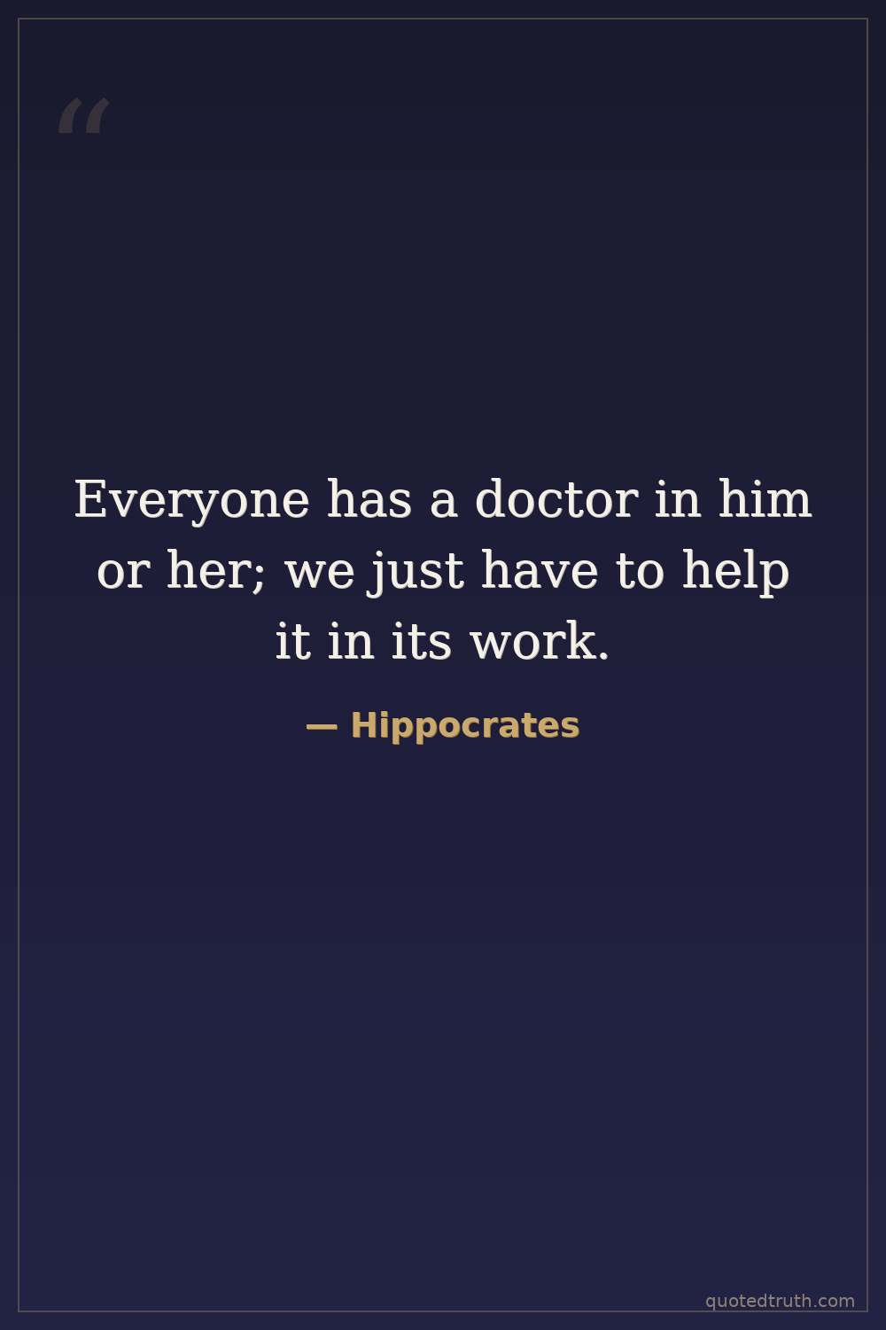 Everyone has a doctor in him or her; we just have to help it in its work.