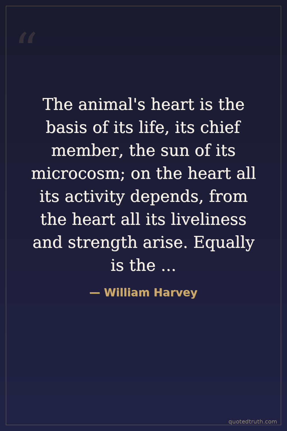 The animal's heart is the basis of its life, its chief member, the sun of its microcosm; on the heart all its activity depends, from the heart all its liveliness and strength arise. Equally is the king the basis of his kingdoms, the sun of his microcosm, the heart of the state; from him all power arises and all grace stems.