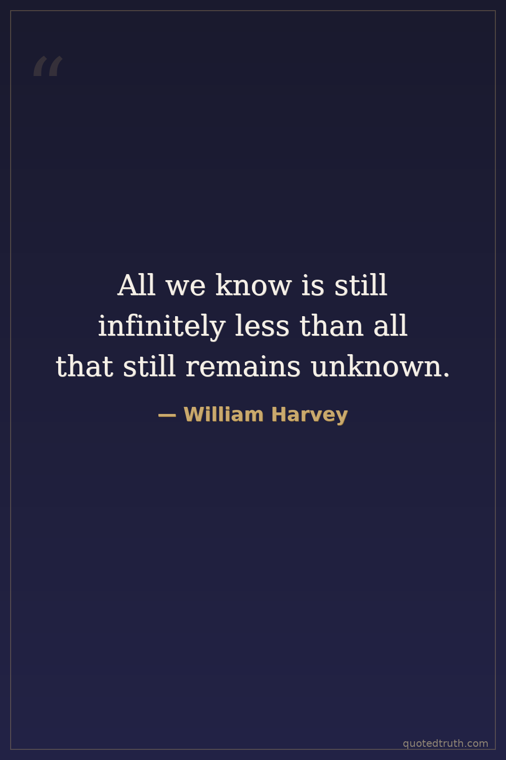 A statement reflecting scientific humility and the vastness of unexplored knowledge, from 'De Motu Cordis' (1628), Dedication to Doctor Argent.