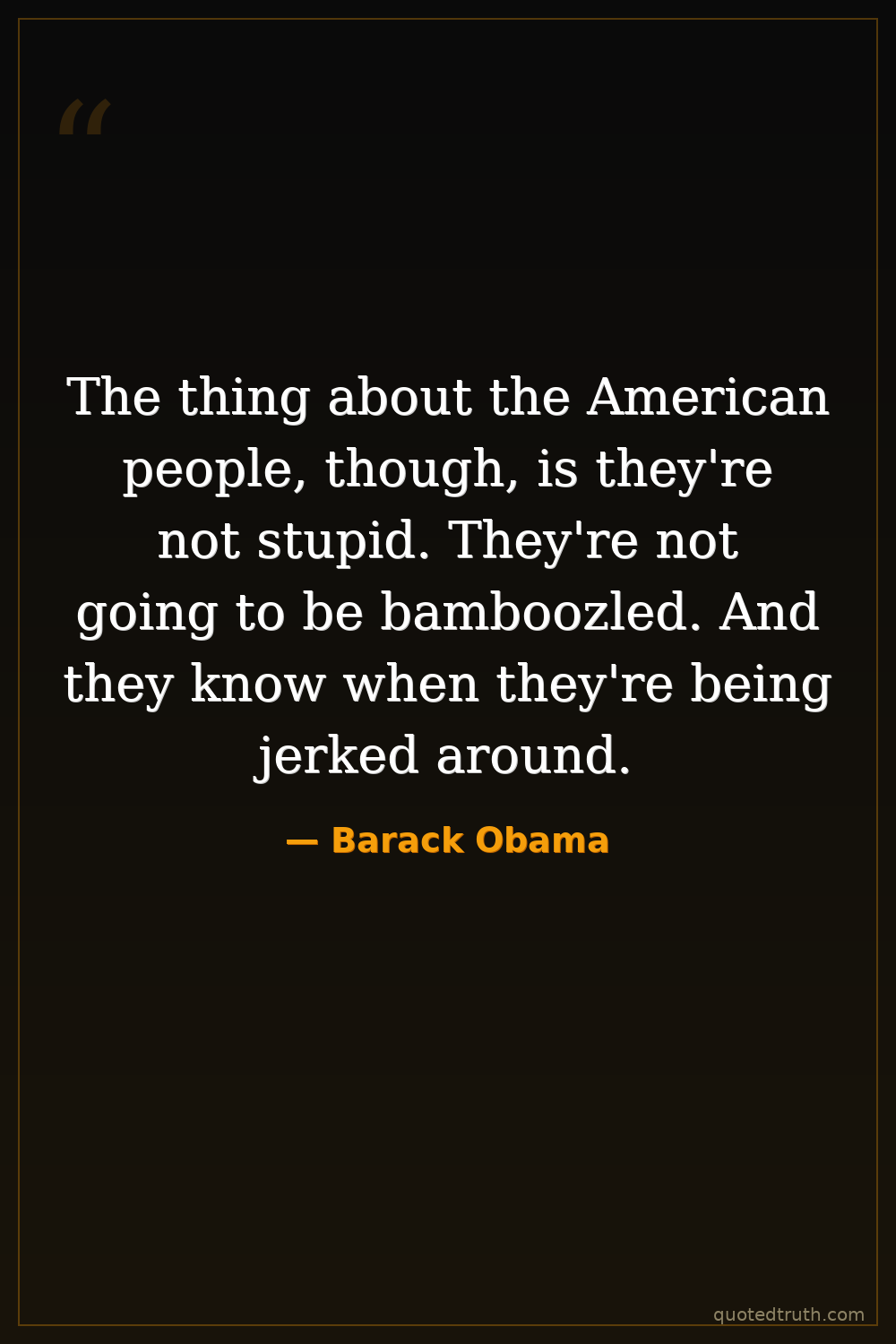 The thing about the American people, though, is they're not stupid. They're not going to be bamboozled. And they know when they're being jerked around.