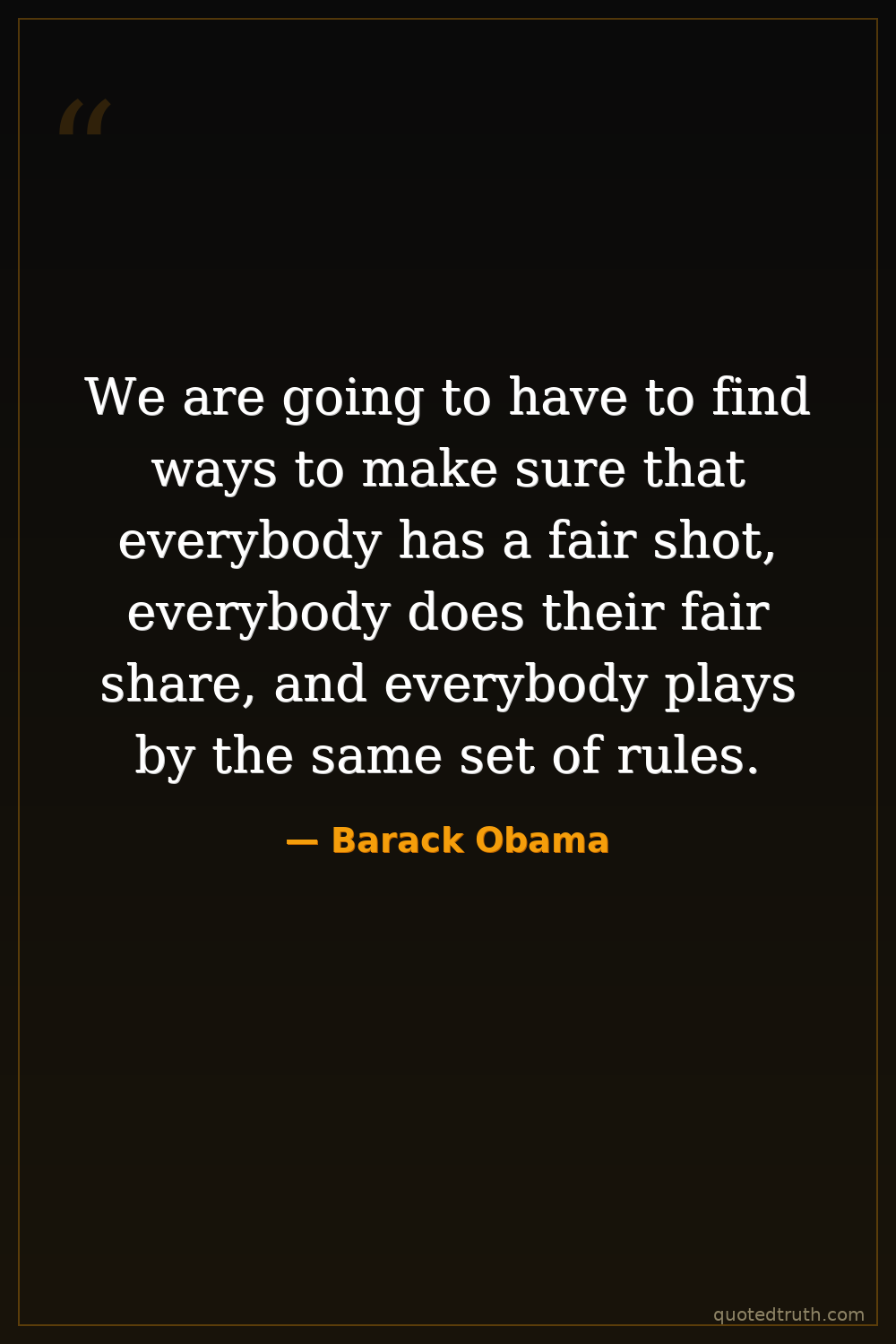 We are going to have to find ways to make sure that everybody has a fair shot, everybody does their fair share, and everybody plays by the same set of rules.