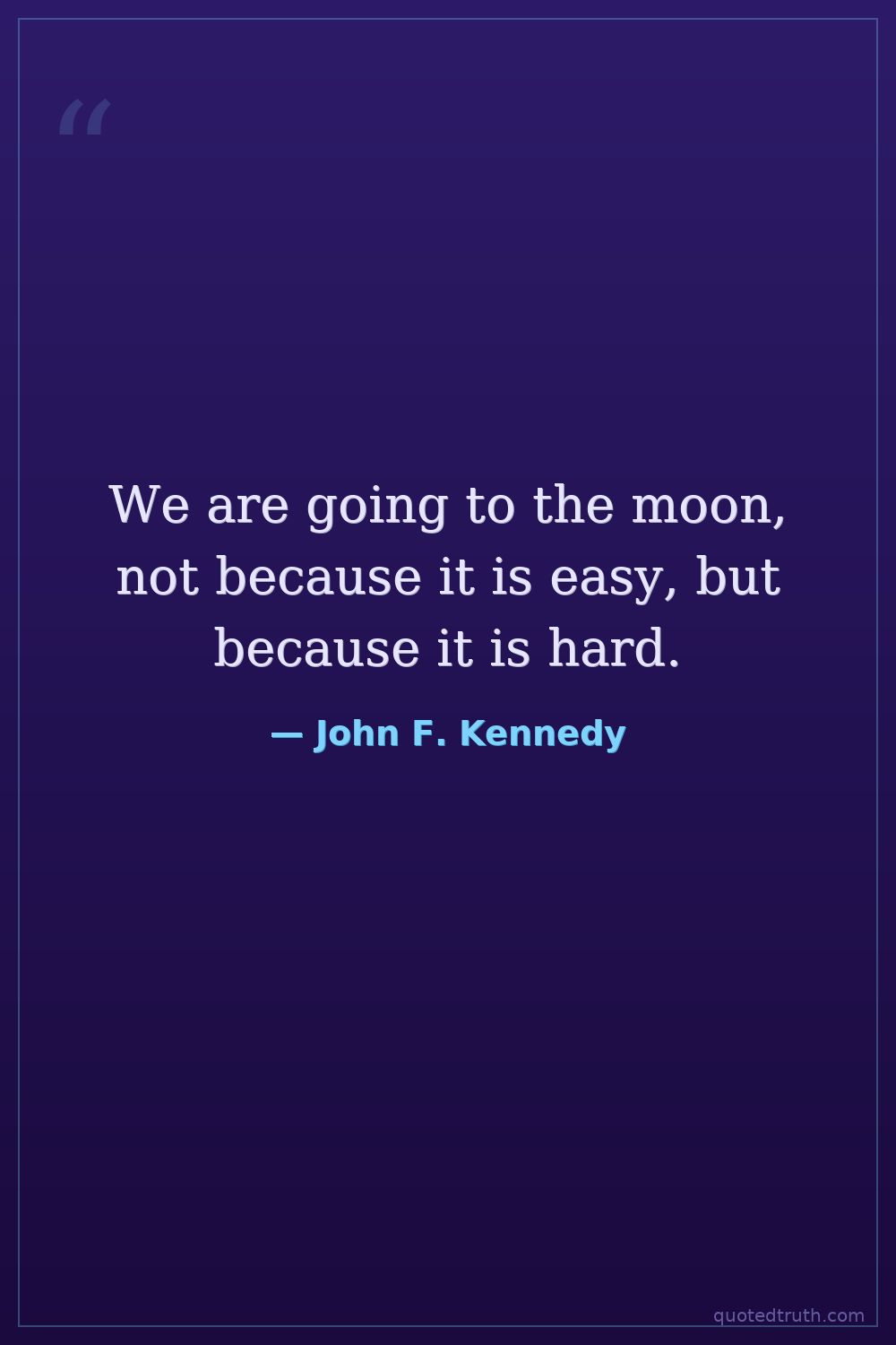 We are going to the moon, not because it is easy, but because it is hard.