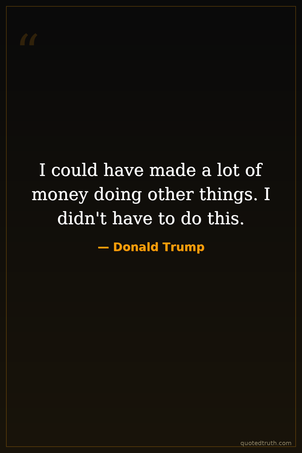 I could have made a lot of money doing other things. I didn't have to do this.