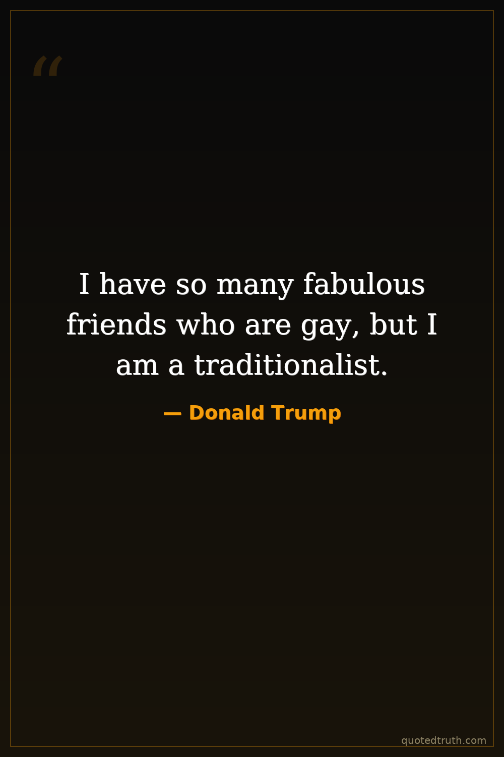 I have so many fabulous friends who are gay, but I am a traditionalist.