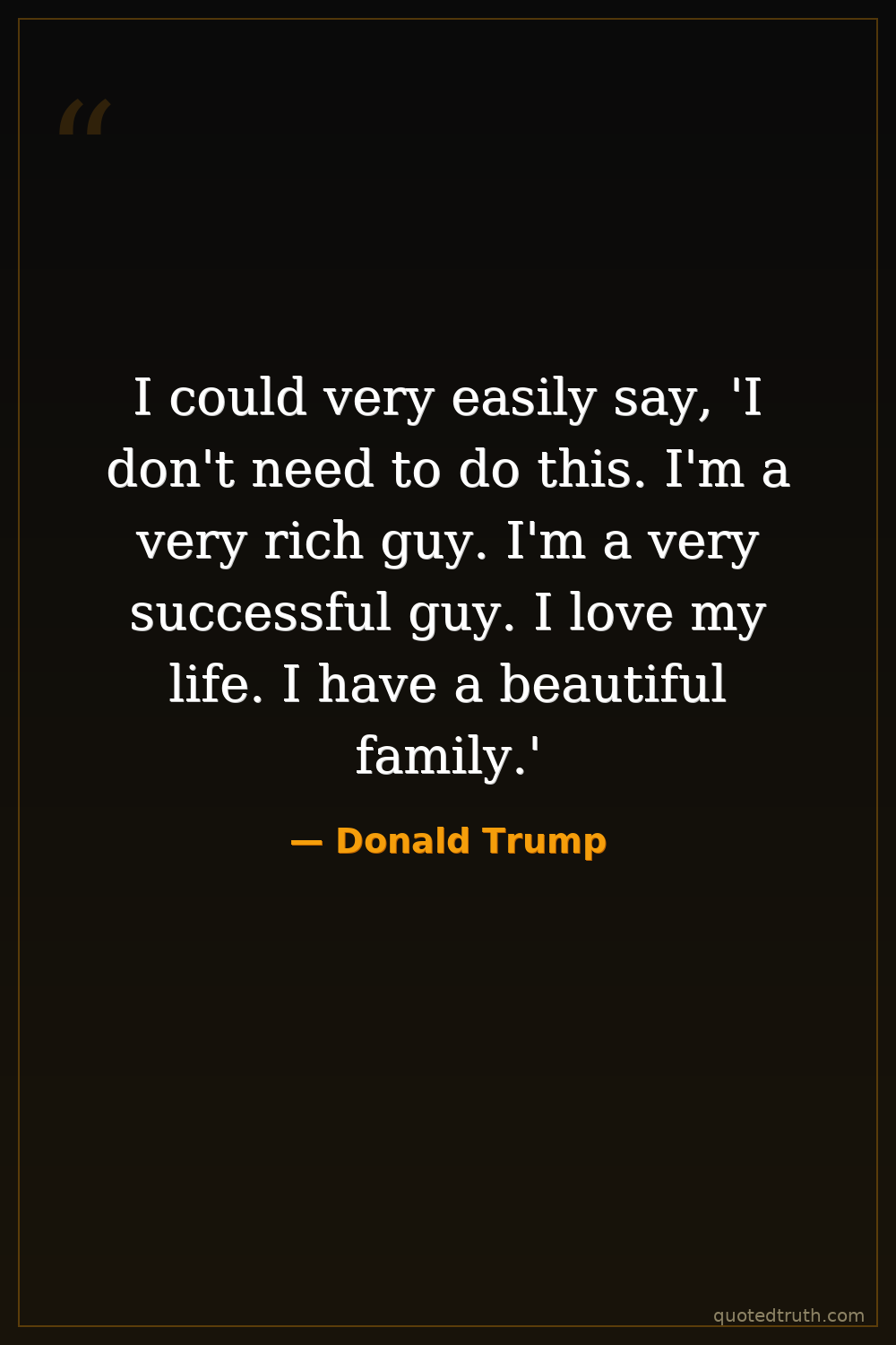 I could very easily say, 'I don't need to do this. I'm a very rich guy. I'm a very successful guy. I love my life. I have a beautiful family.'