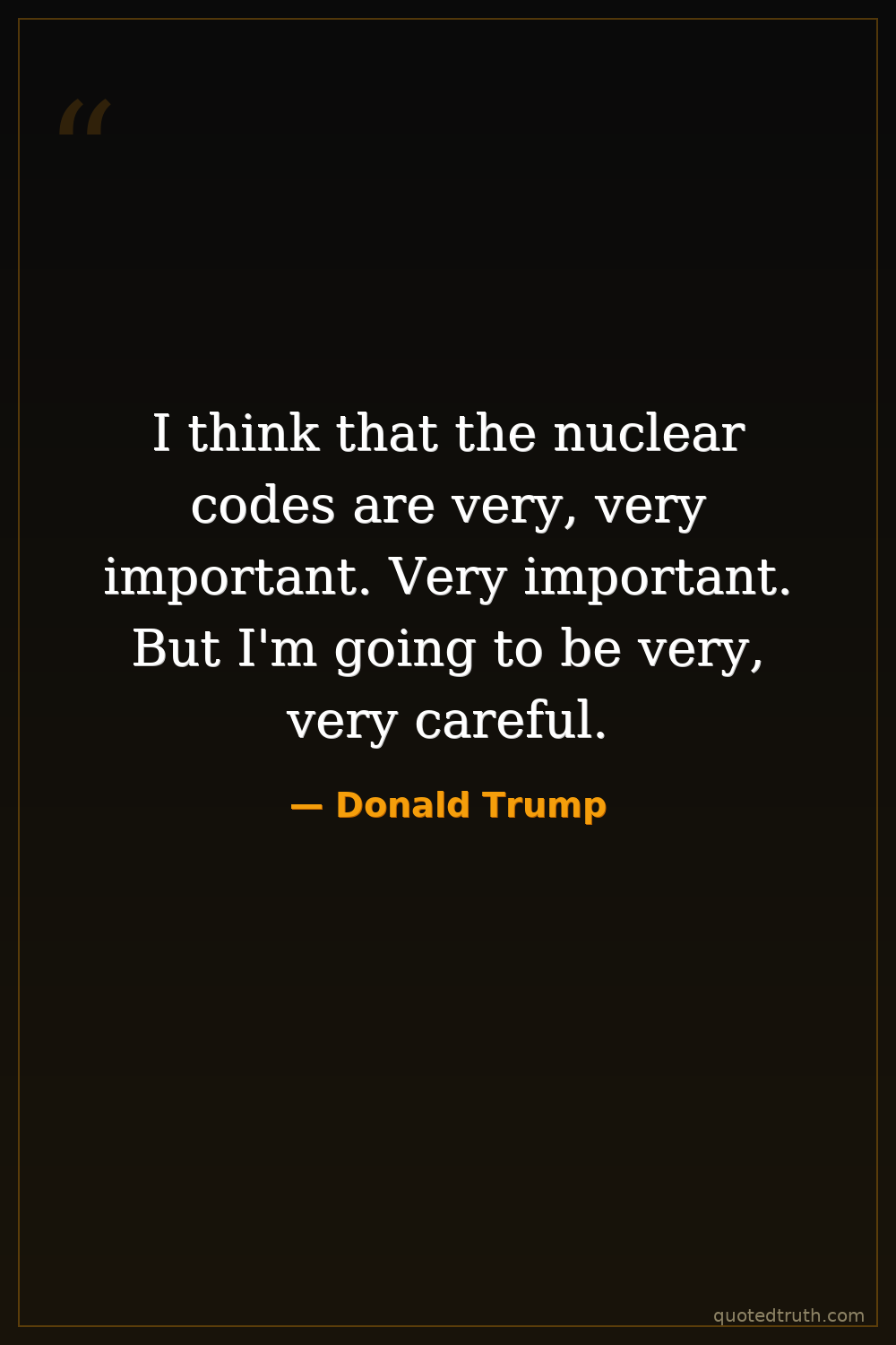 I think that the nuclear codes are very, very important. Very important. But I'm going to be very, very careful.