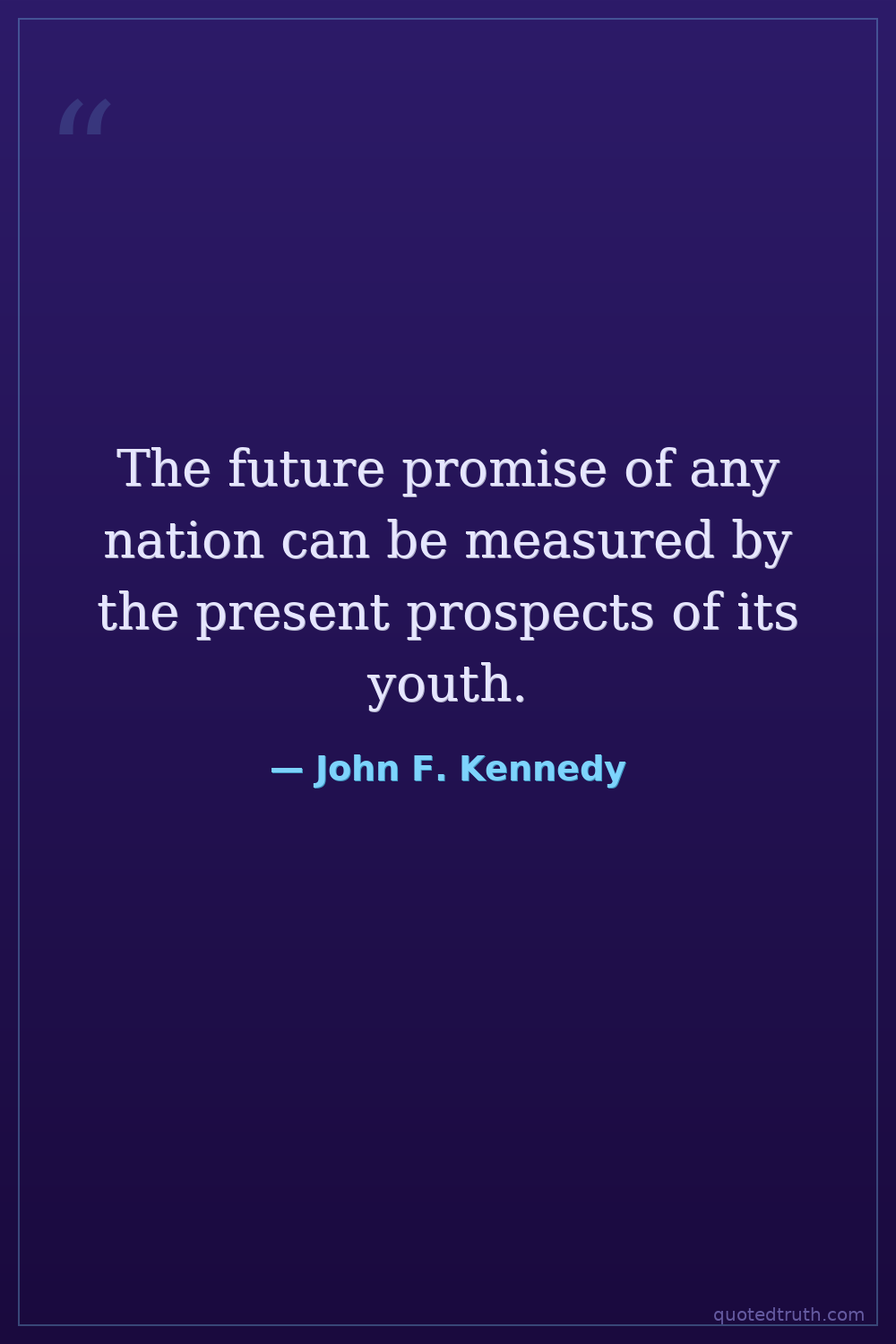 The future promise of any nation can be measured by the present prospects of its youth.