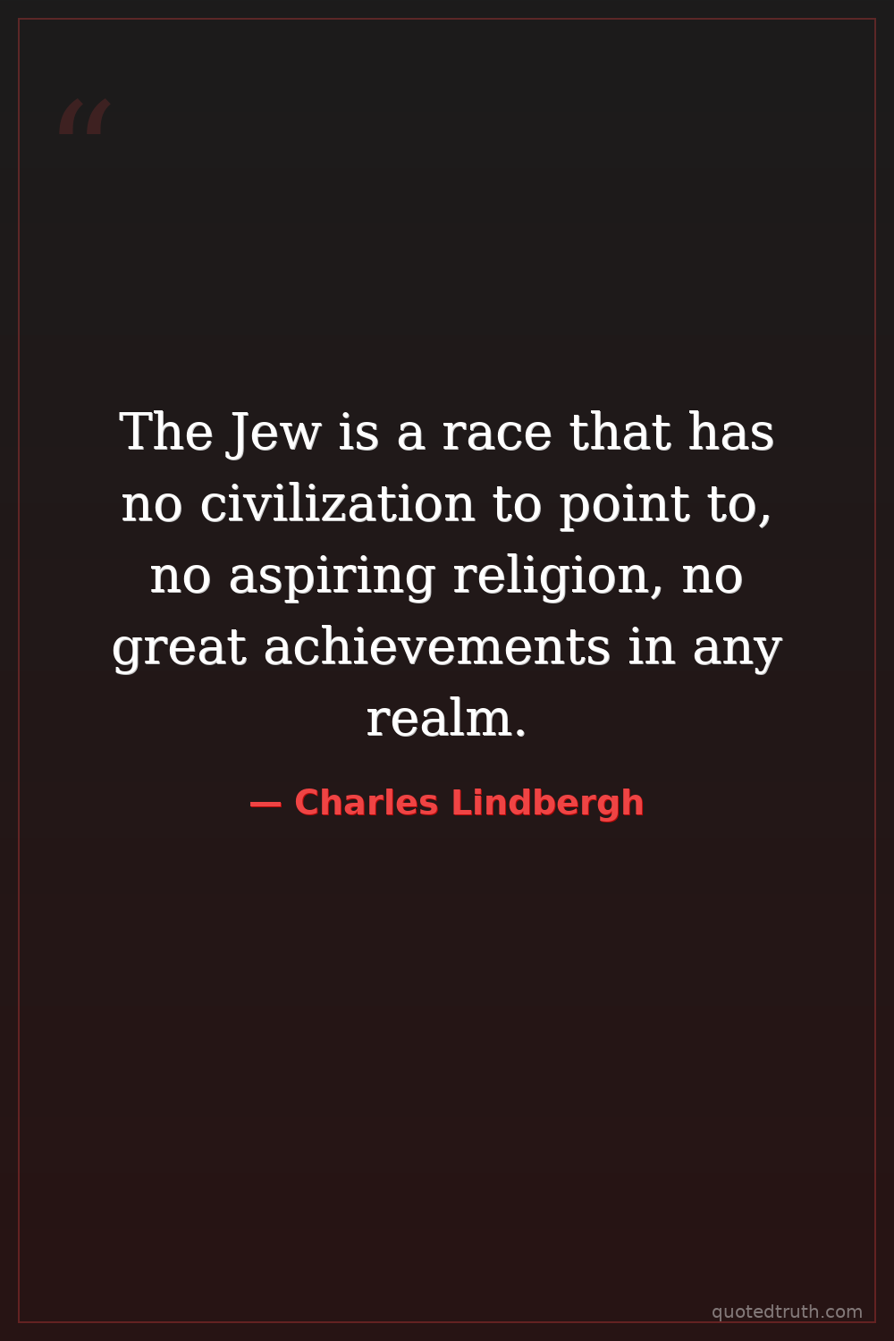 The Jew is a race that has no civilization to point to, no aspiring religion, no great achievements in any realm.