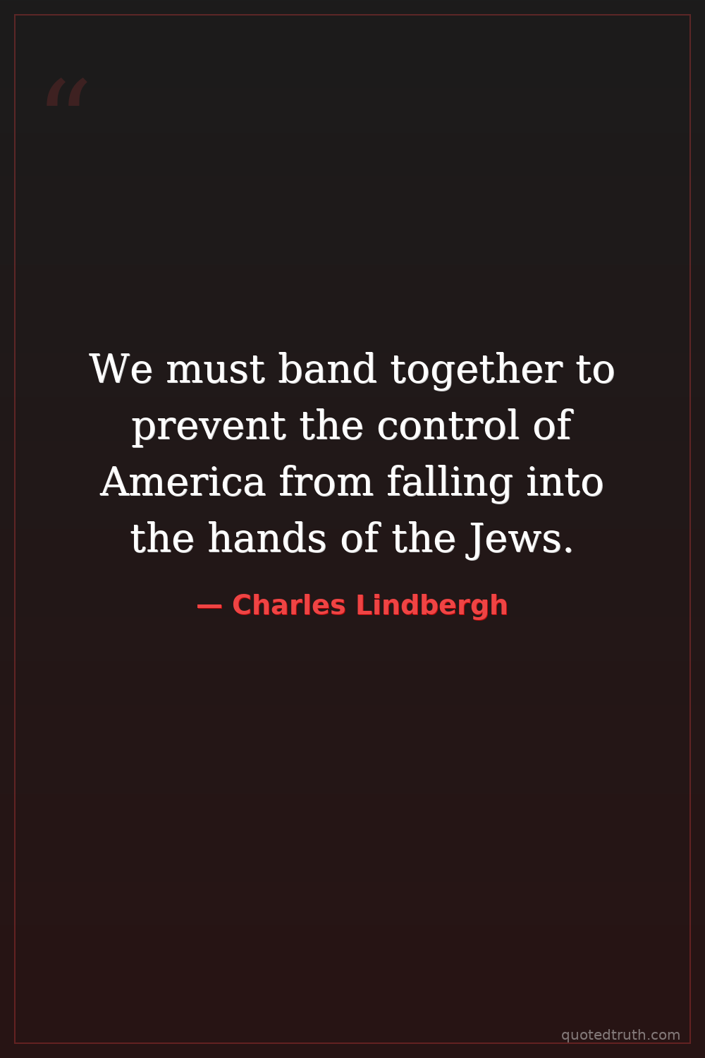 We must band together to prevent the control of America from falling into the hands of the Jews.
