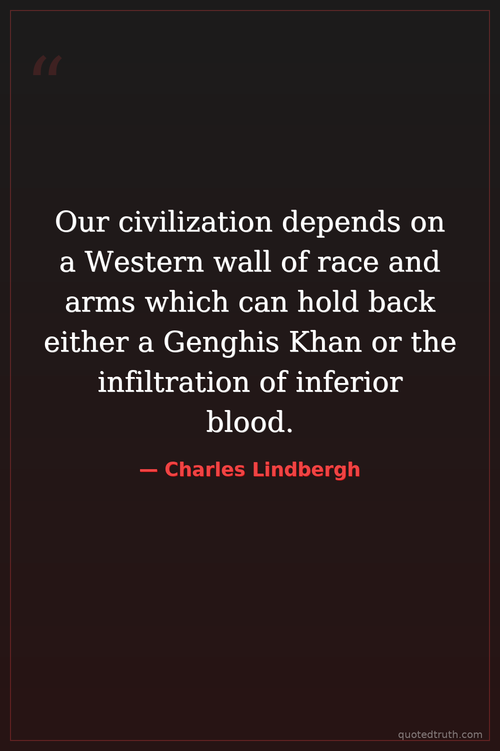 Our civilization depends on a Western wall of race and arms which can hold back either a Genghis Khan or the infiltration of inferior blood.