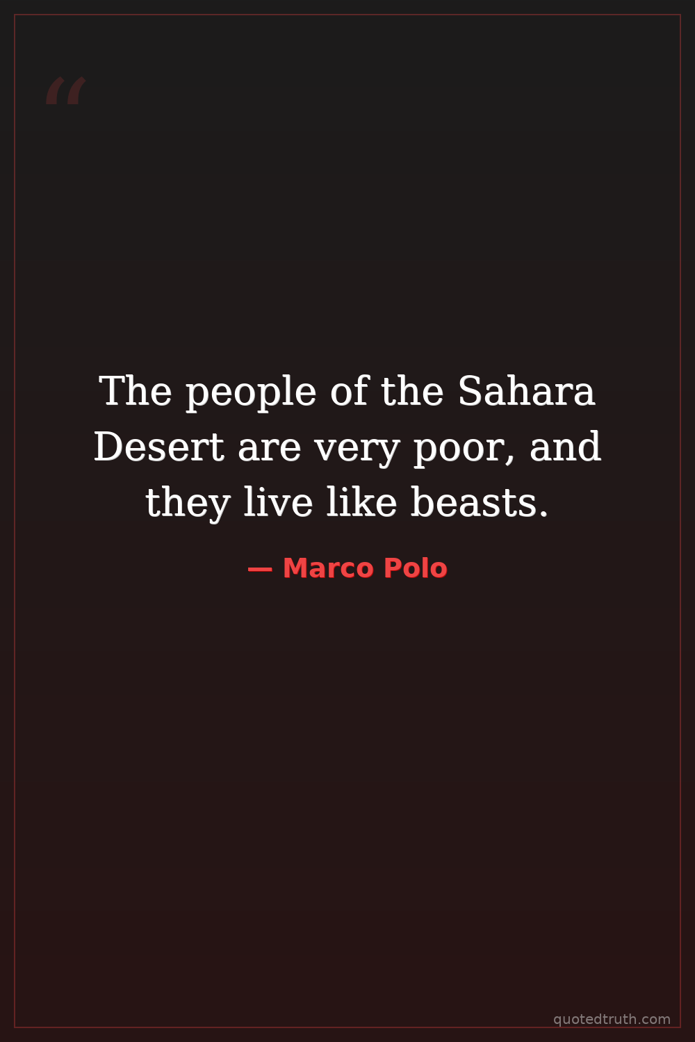The people of the Sahara Desert are very poor, and they live like beasts.