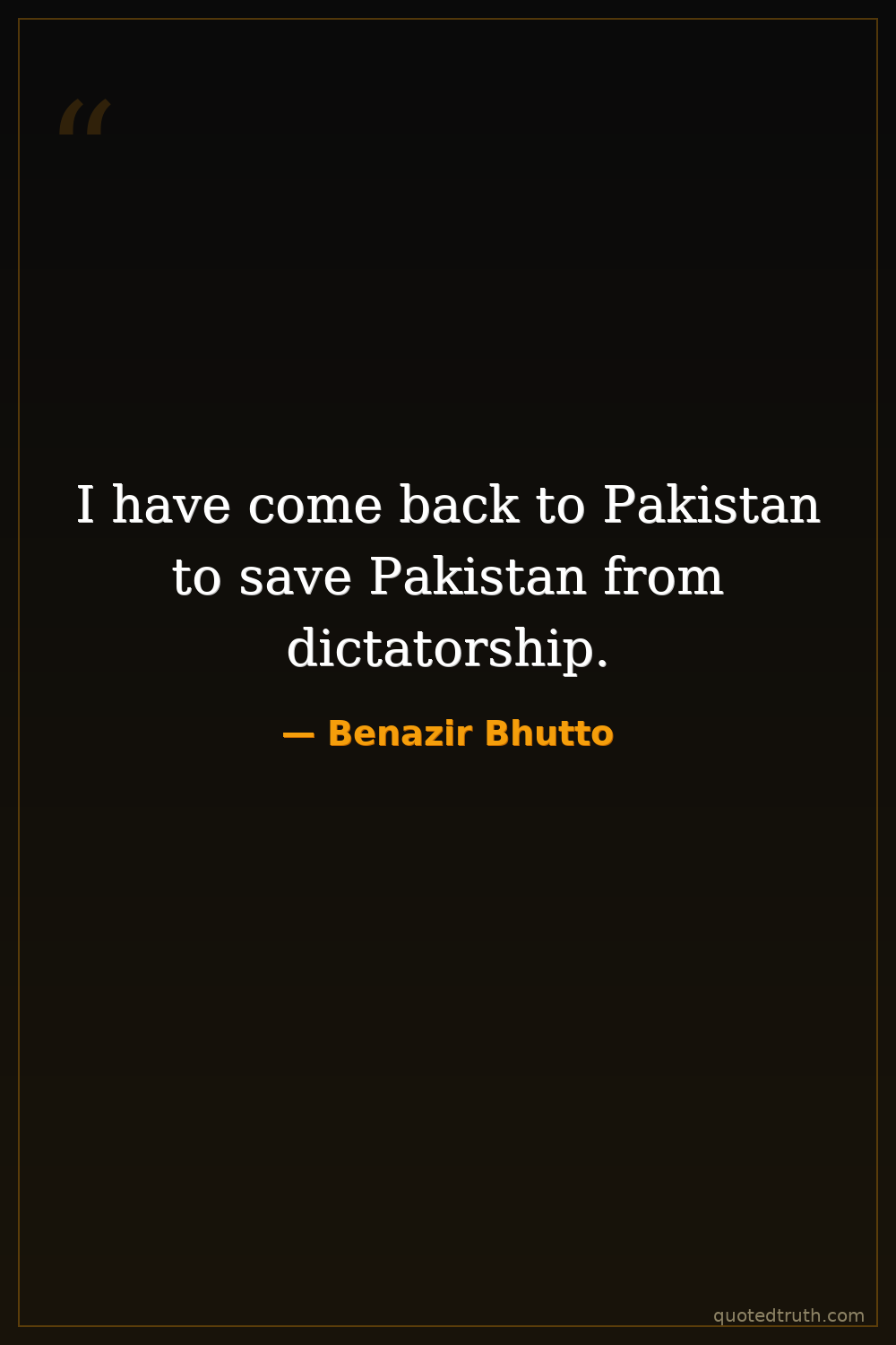I have come back to Pakistan to save Pakistan from dictatorship.