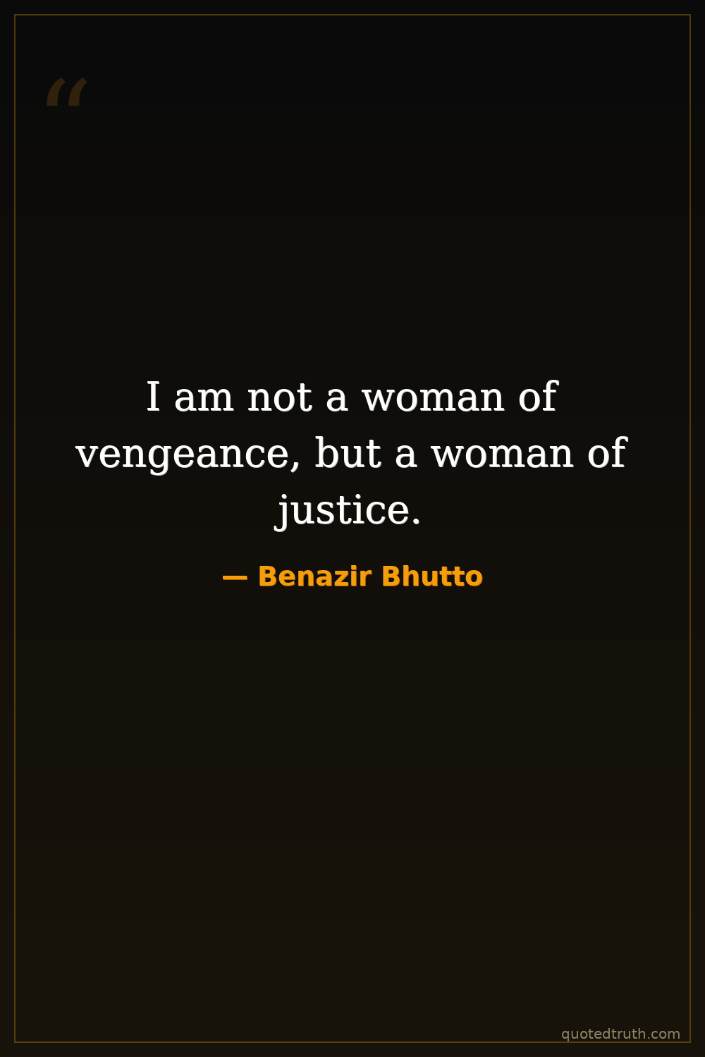 I am not a woman of vengeance, but a woman of justice.