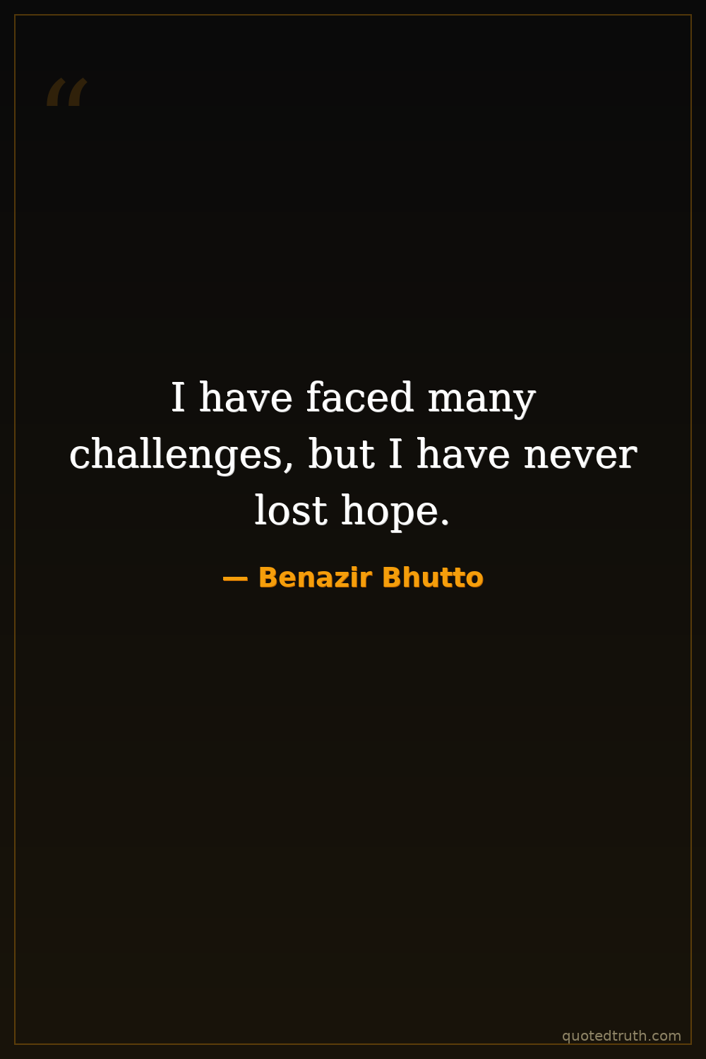 I have faced many challenges, but I have never lost hope.