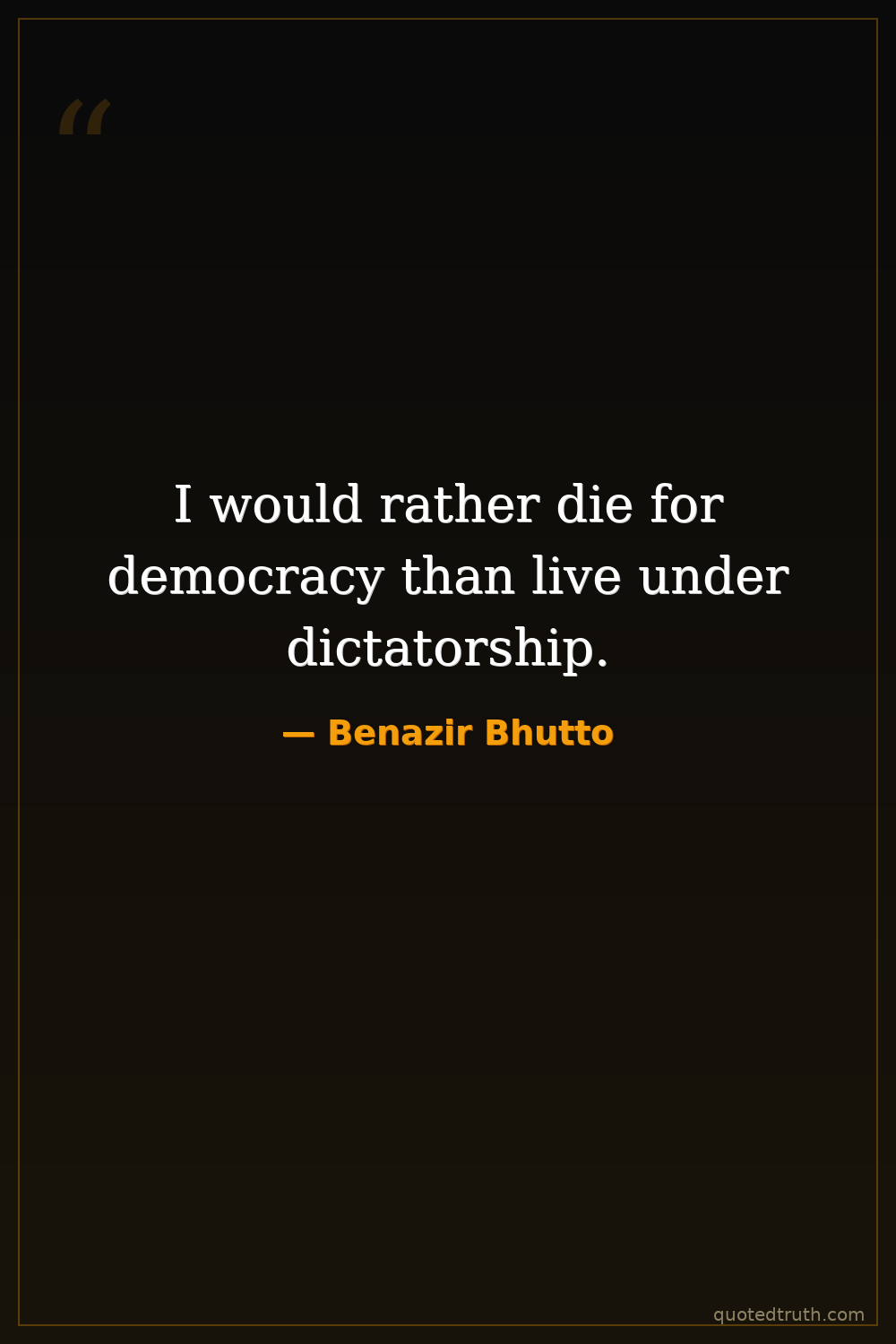 I would rather die for democracy than live under dictatorship.