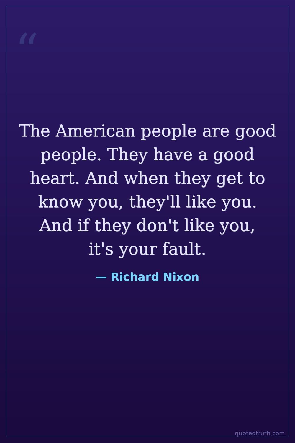The American people are good people. They have a good heart. And when they get to know you, they'll like you. And if they don't like you, it's your fault.