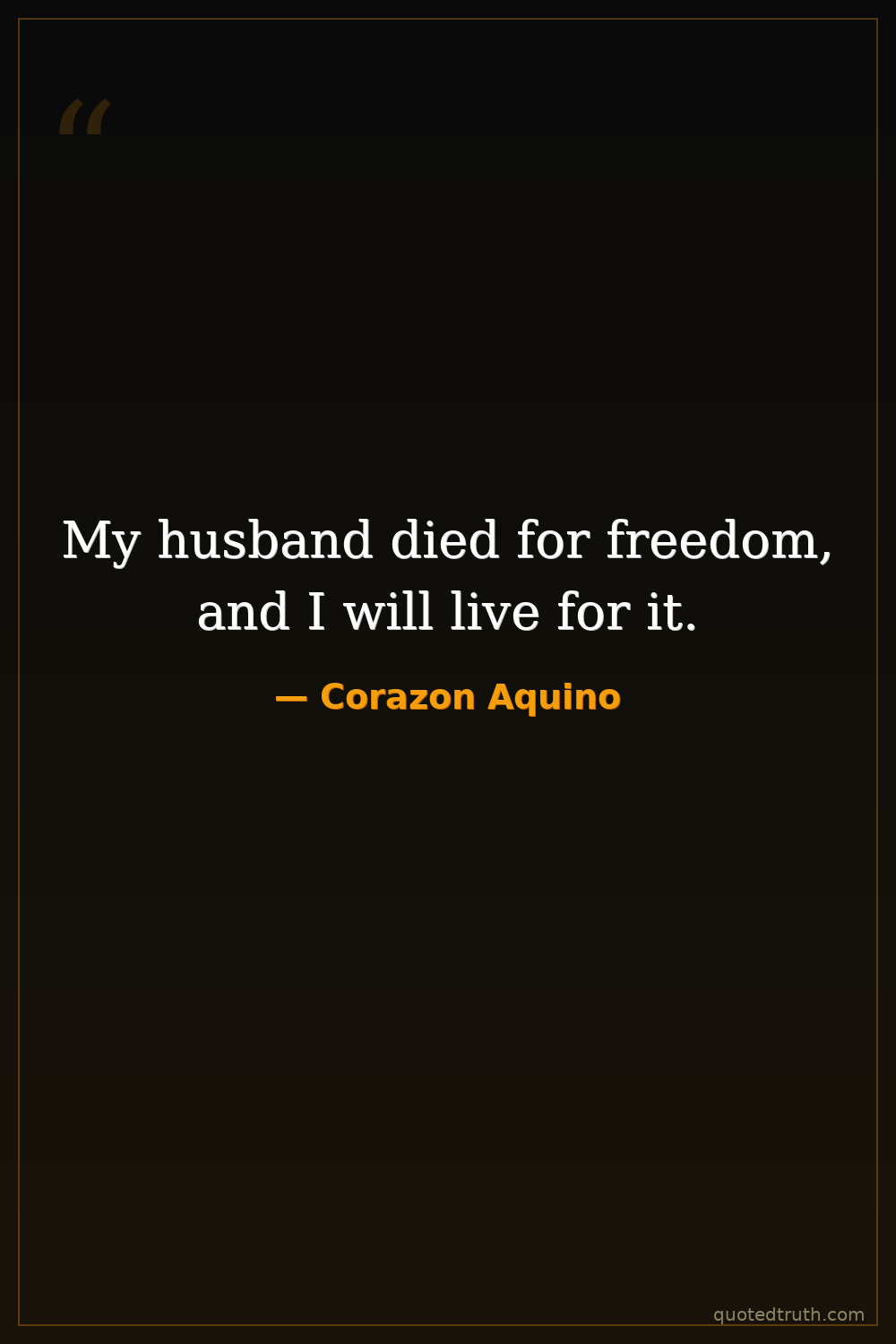 My husband died for freedom, and I will live for it.