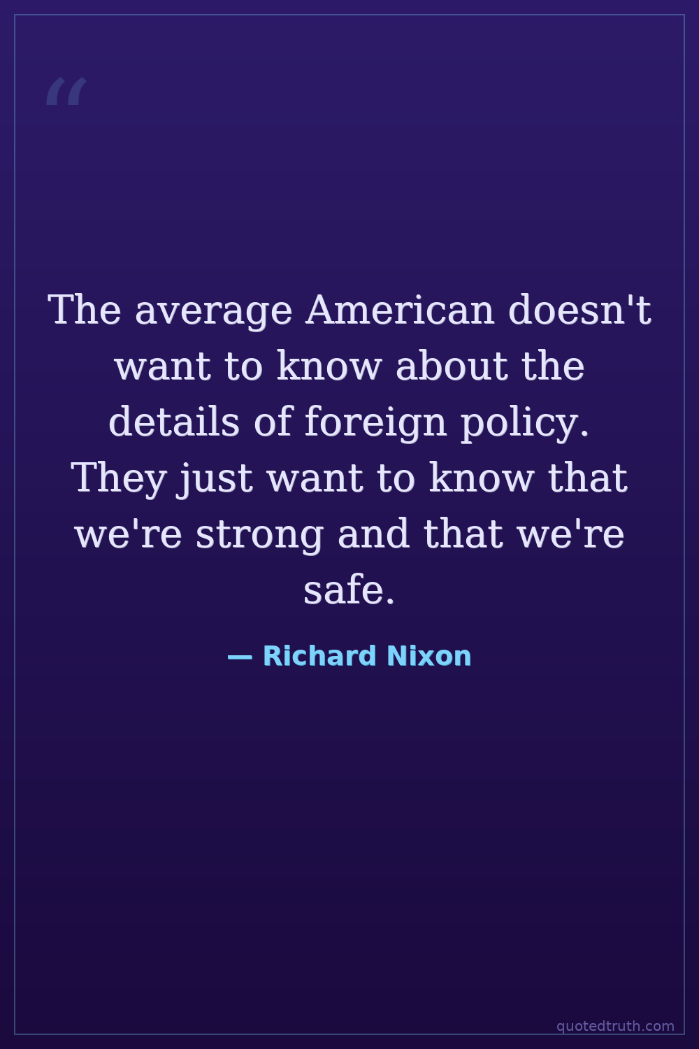 The average American doesn't want to know about the details of foreign policy. They just want to know that we're strong and that we're safe.
