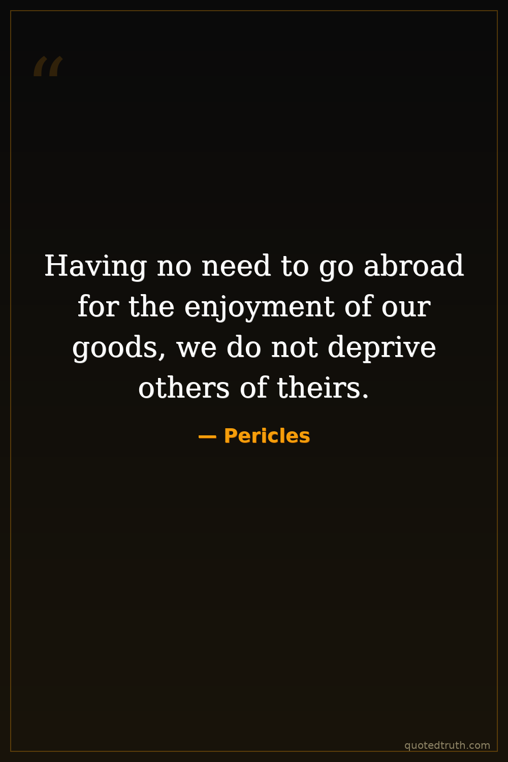 Having no need to go abroad for the enjoyment of our goods, we do not deprive others of theirs.