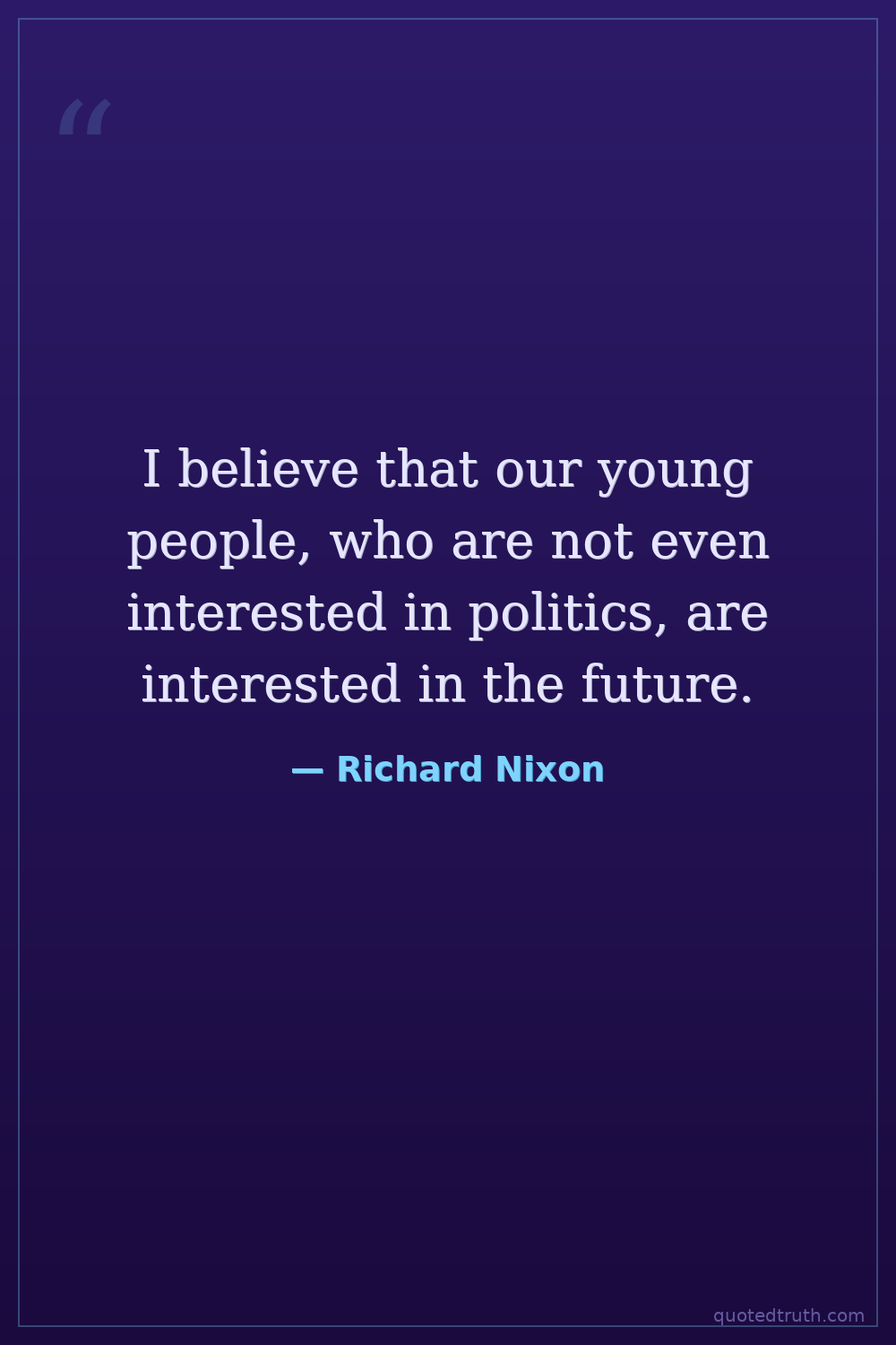 I believe that our young people, who are not even interested in politics, are interested in the future.