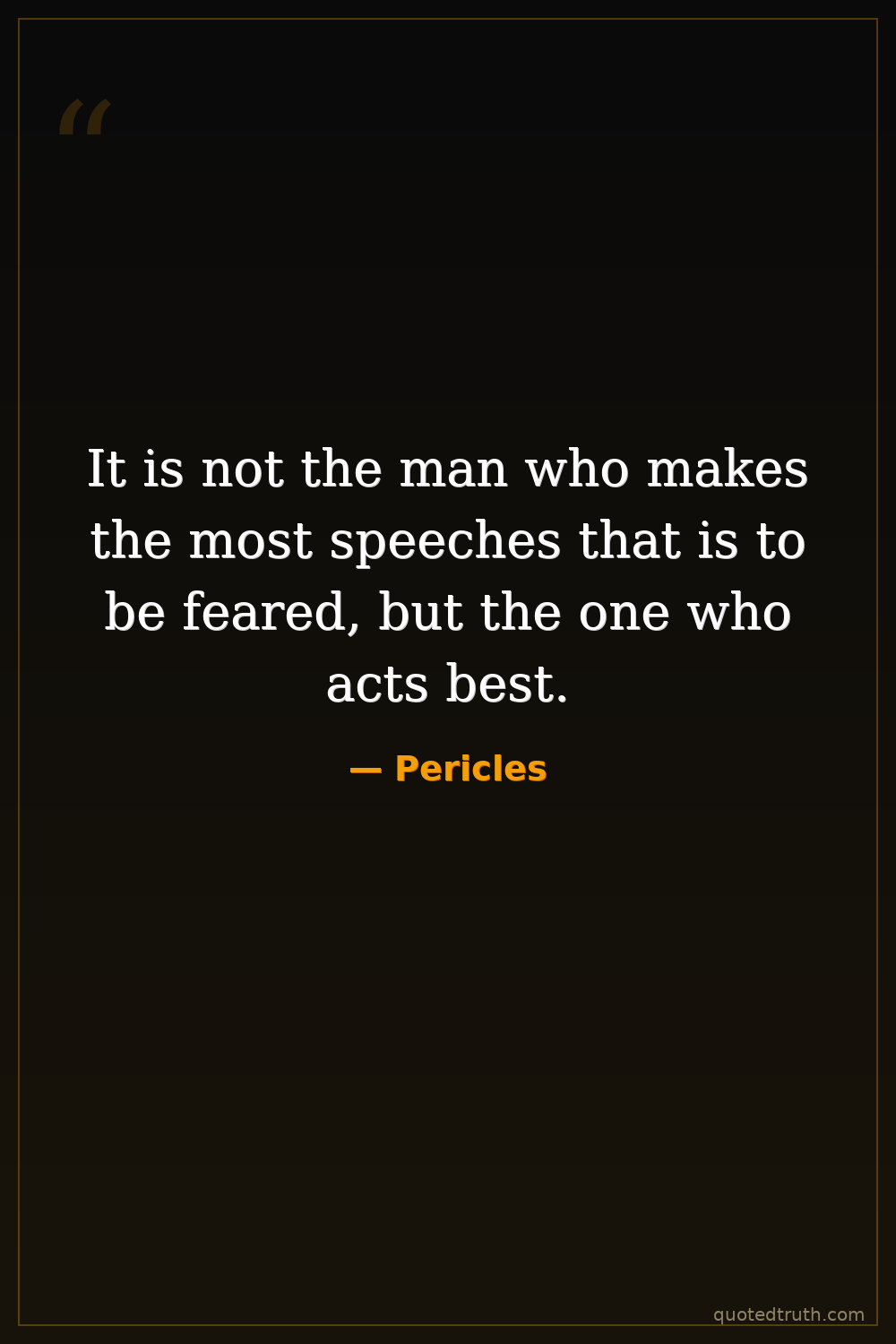 It is not the man who makes the most speeches that is to be feared, but the one who acts best.
