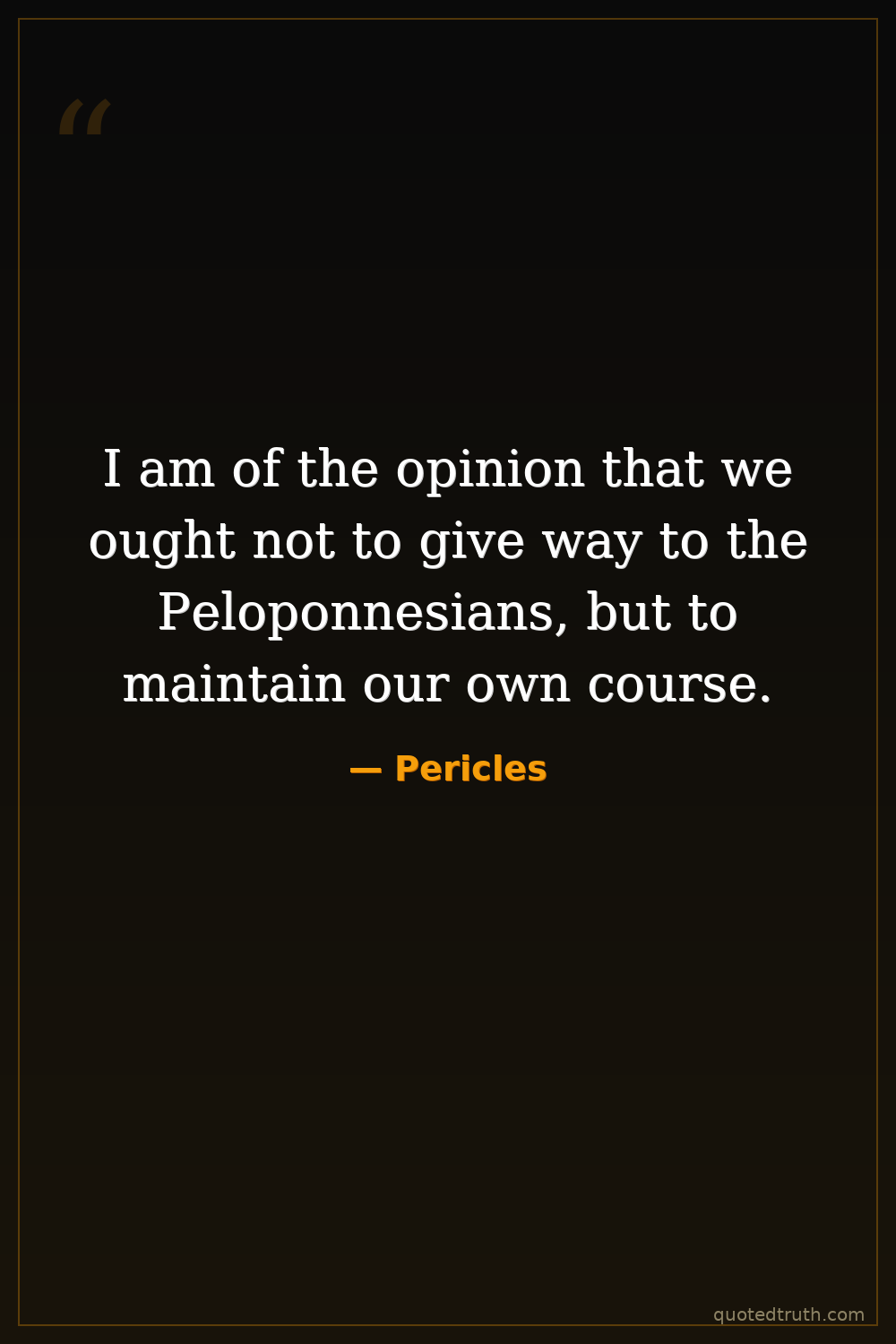 I am of the opinion that we ought not to give way to the Peloponnesians, but to maintain our own course.