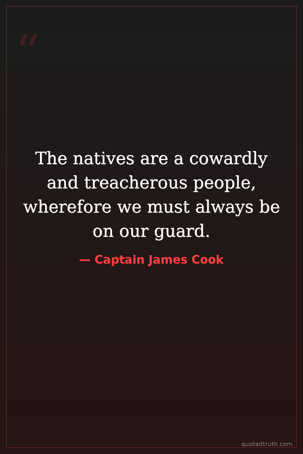 The natives are a cowardly and treacherous people, wherefore we must always be on our guard.