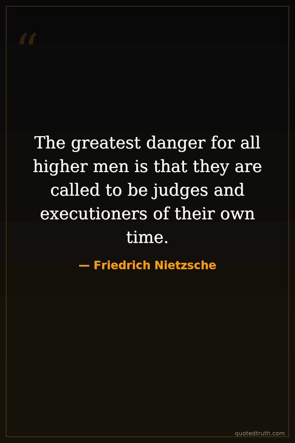 The greatest danger for all higher men is that they are called to be judges and executioners of their own time.
