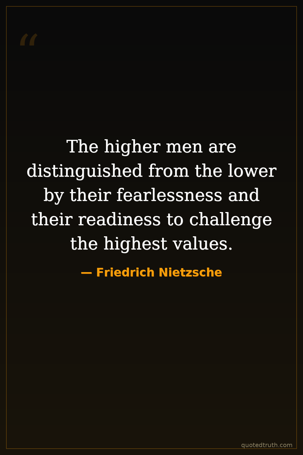 The higher men are distinguished from the lower by their fearlessness and their readiness to challenge the highest values.