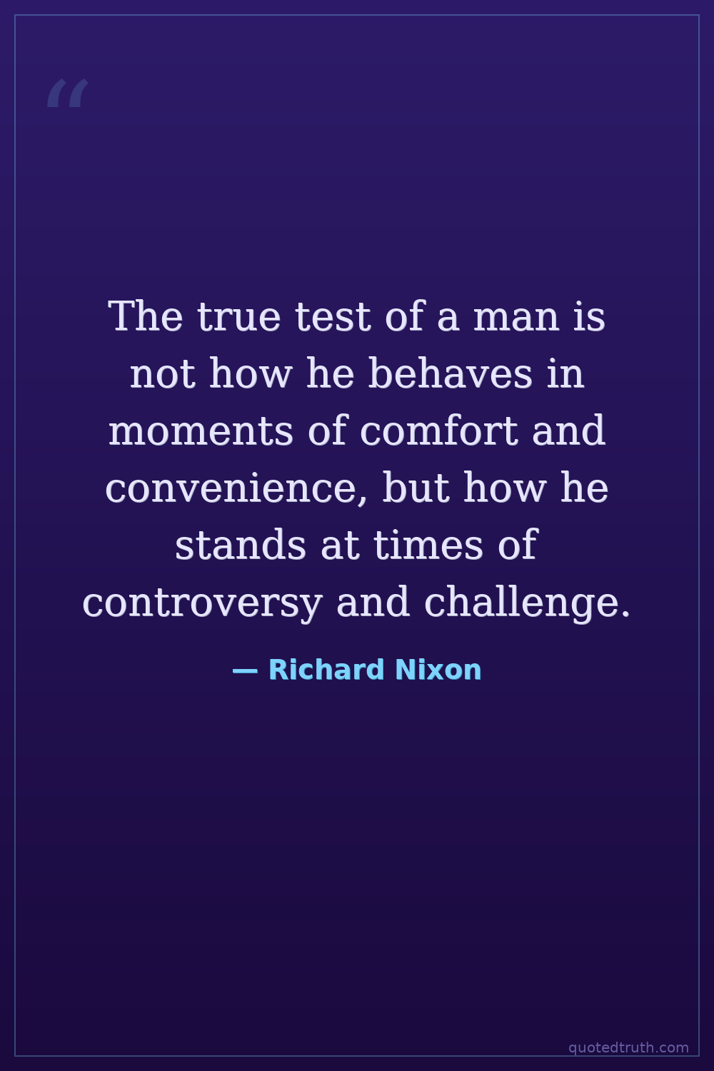 The true test of a man is not how he behaves in moments of comfort and convenience, but how he stands at times of controversy and challenge.