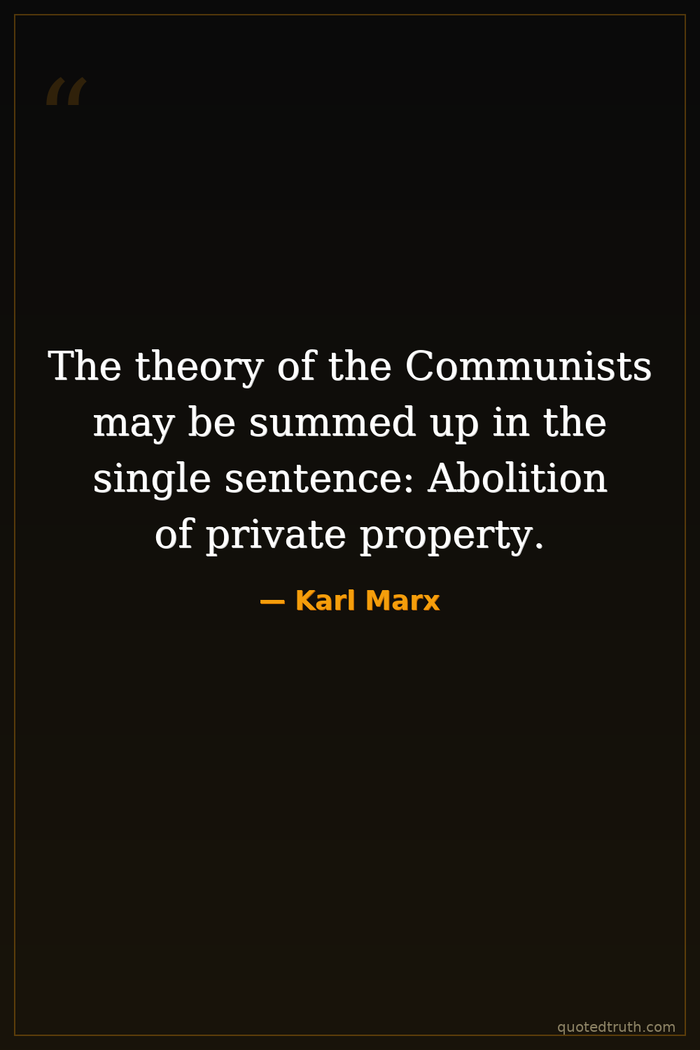 The theory of the Communists may be summed up in the single sentence: Abolition of private property.