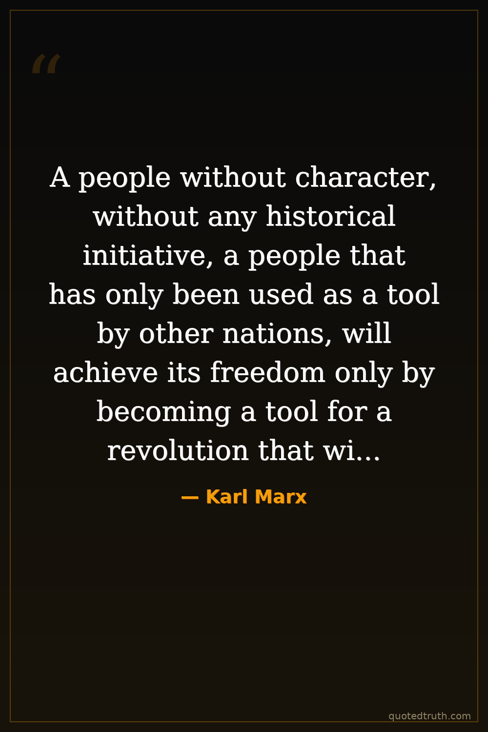 A people without character, without any historical initiative, a people that has only been used as a tool by other nations, will achieve its freedom only by becoming a tool for a revolution that will change the world. — Karl Marx Modern Communist Manifesto, Das Kapital