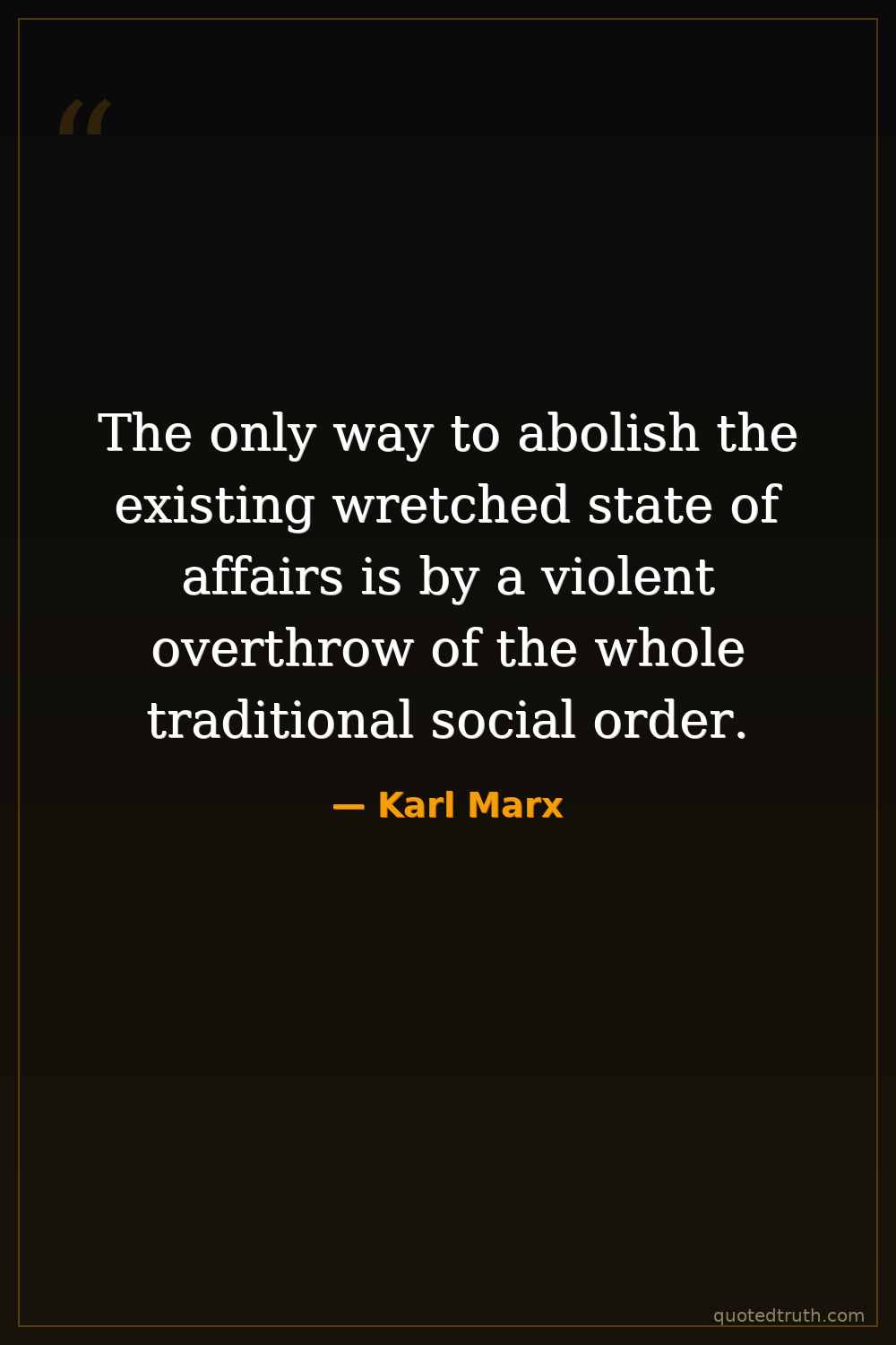 The only way to abolish the existing wretched state of affairs is by a violent overthrow of the whole traditional social order.