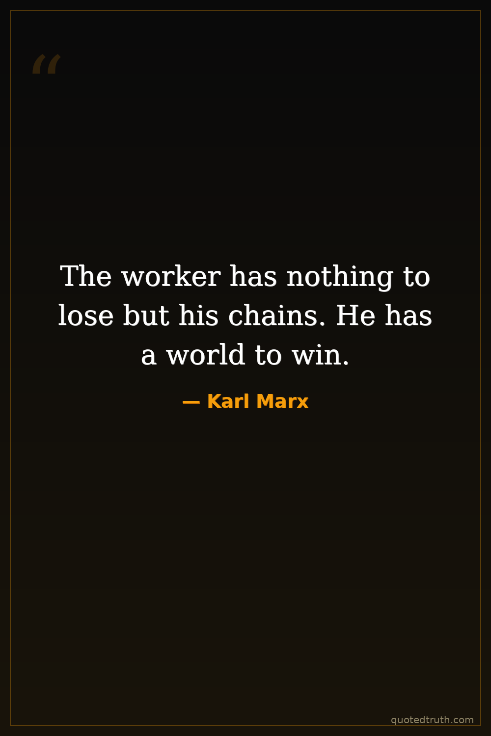 The worker has nothing to lose but his chains. He has a world to win.