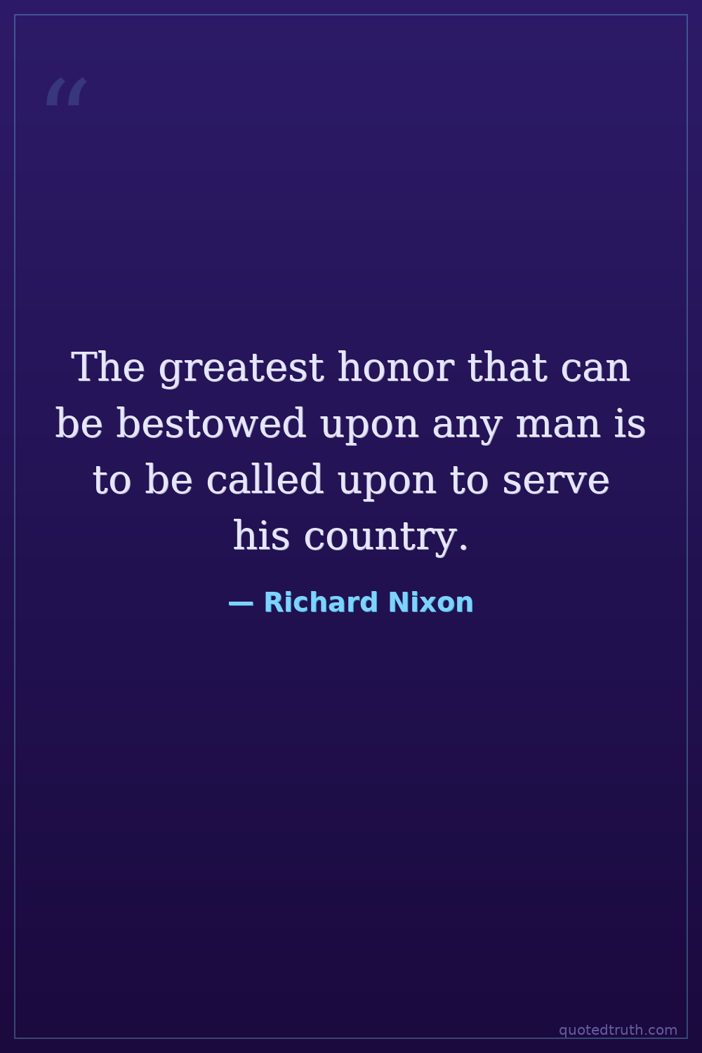 The greatest honor that can be bestowed upon any man is to be called upon to serve his country.