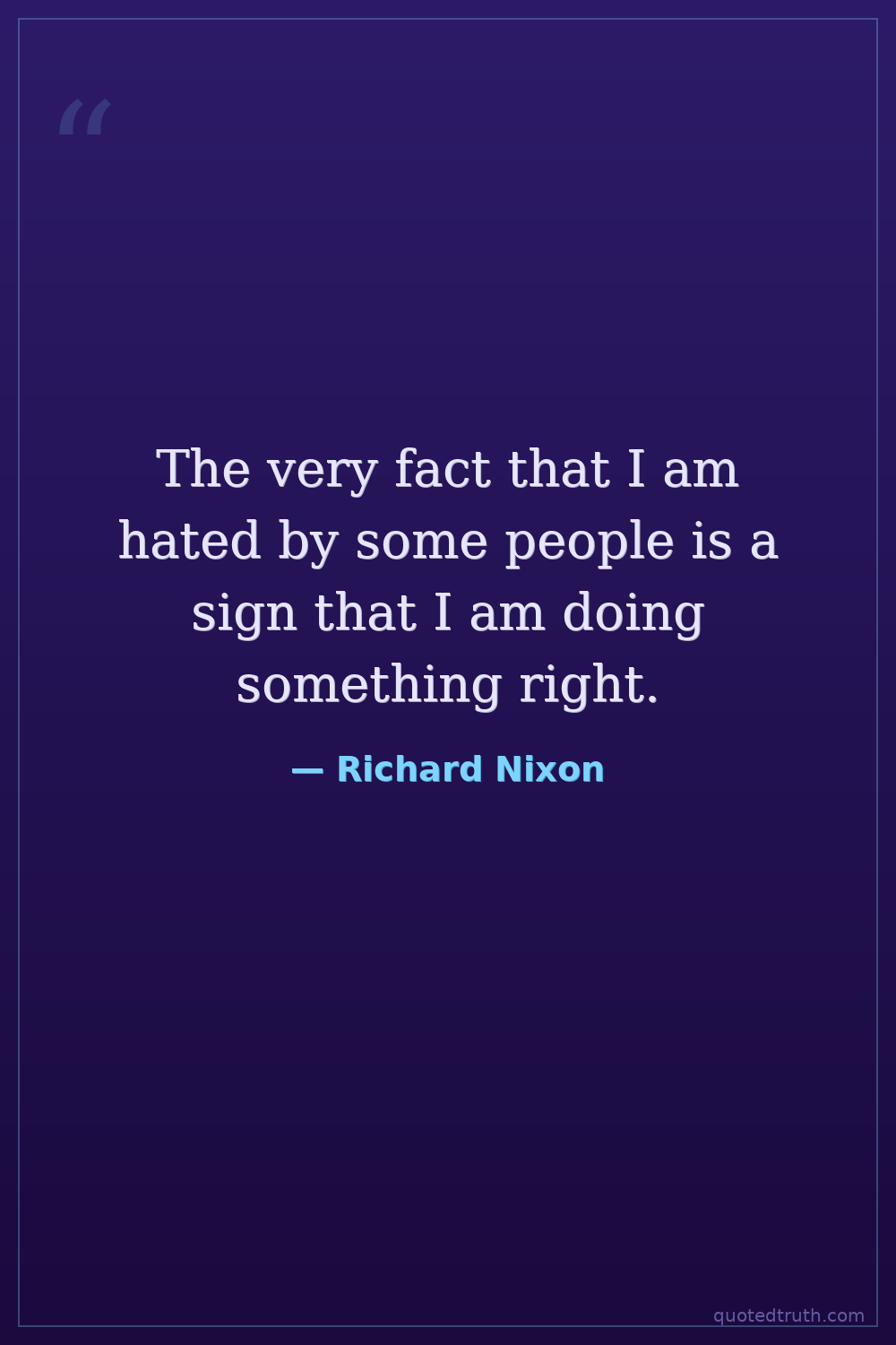 The very fact that I am hated by some people is a sign that I am doing something right.