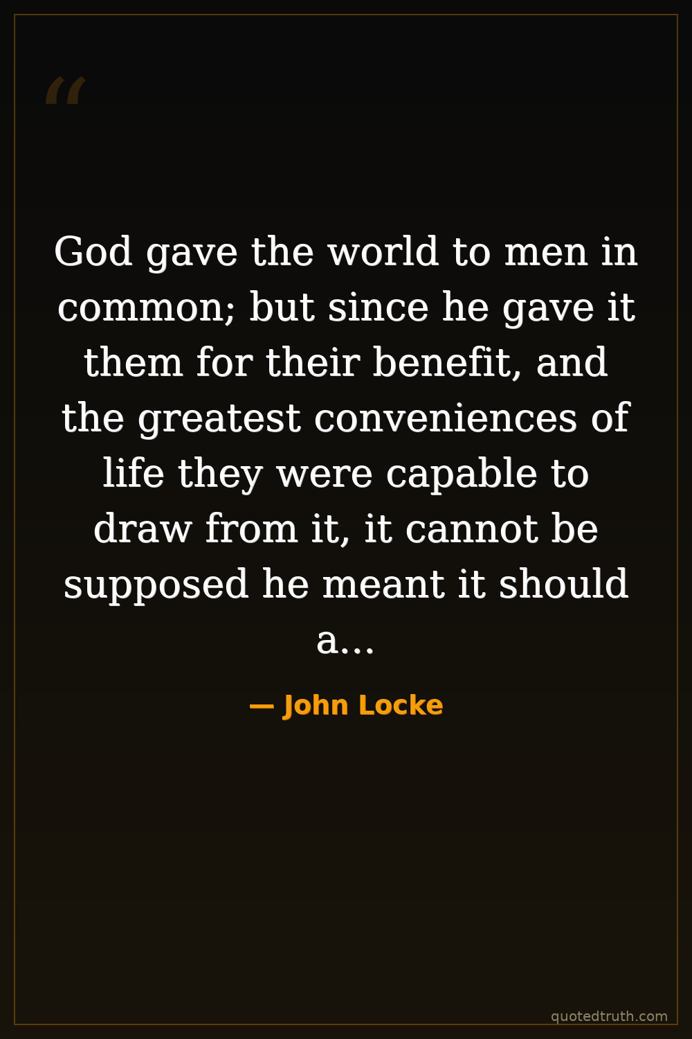 God gave the world to men in common; but since he gave it them for their benefit, and the greatest conveniences of life they were capable to draw from it, it cannot be supposed he meant it should always remain common and uncultivated. — John Locke Early Modern Empiricism, natural rights