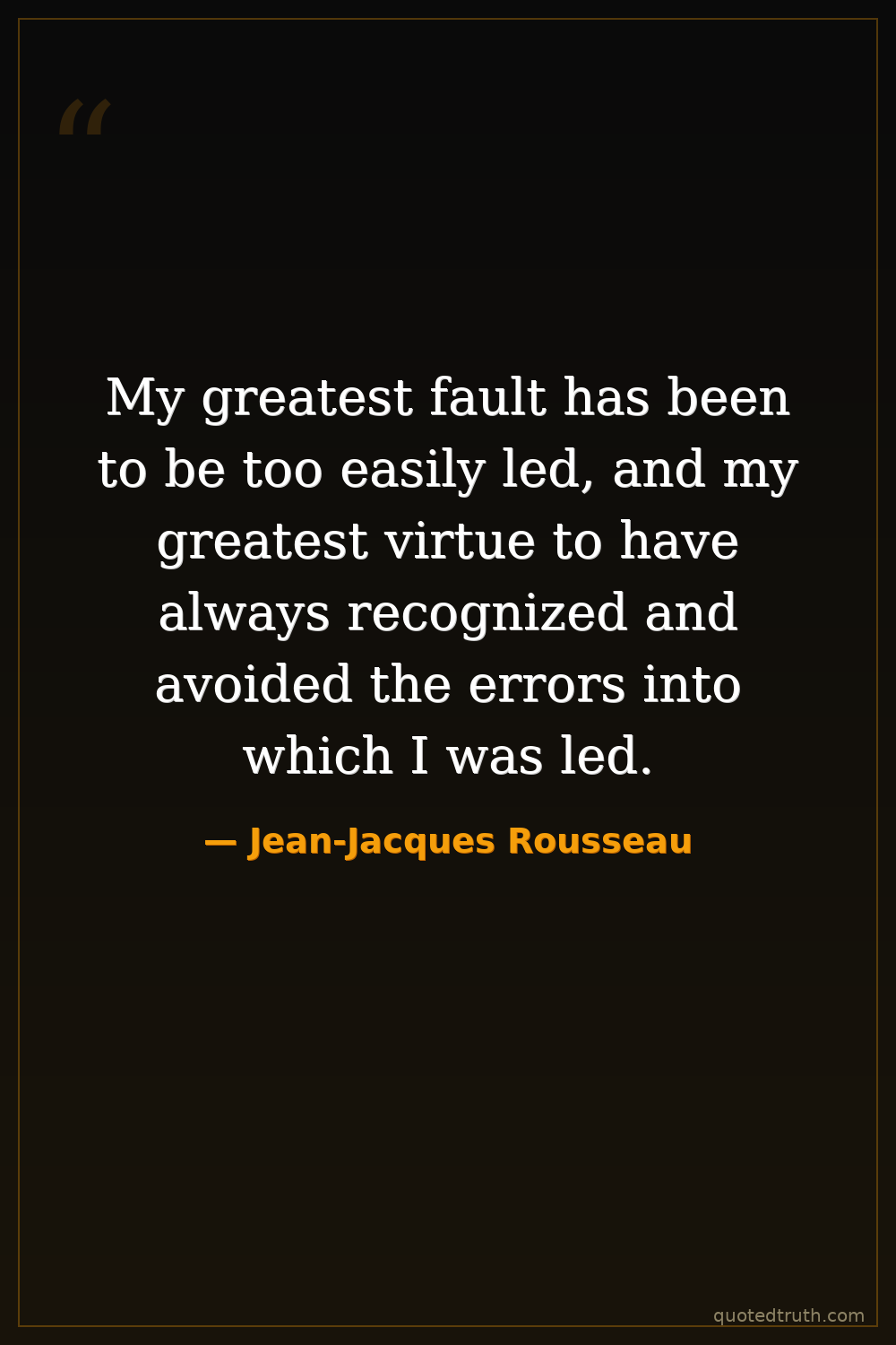 My greatest fault has been to be too easily led, and my greatest virtue to have always recognized and avoided the errors into which I was led.