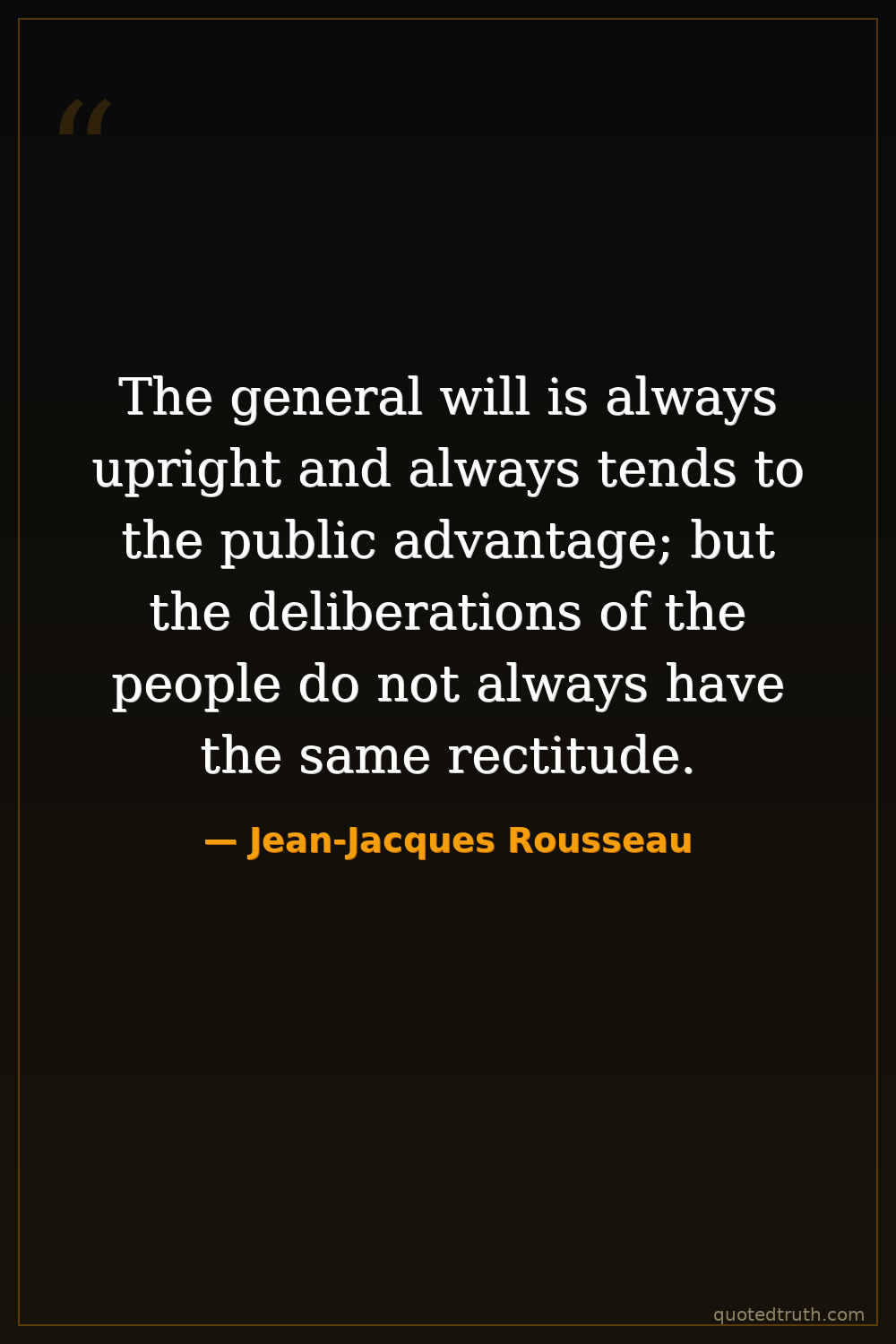 The general will is always upright and always tends to the public advantage; but the deliberations of the people do not always have the same rectitude.