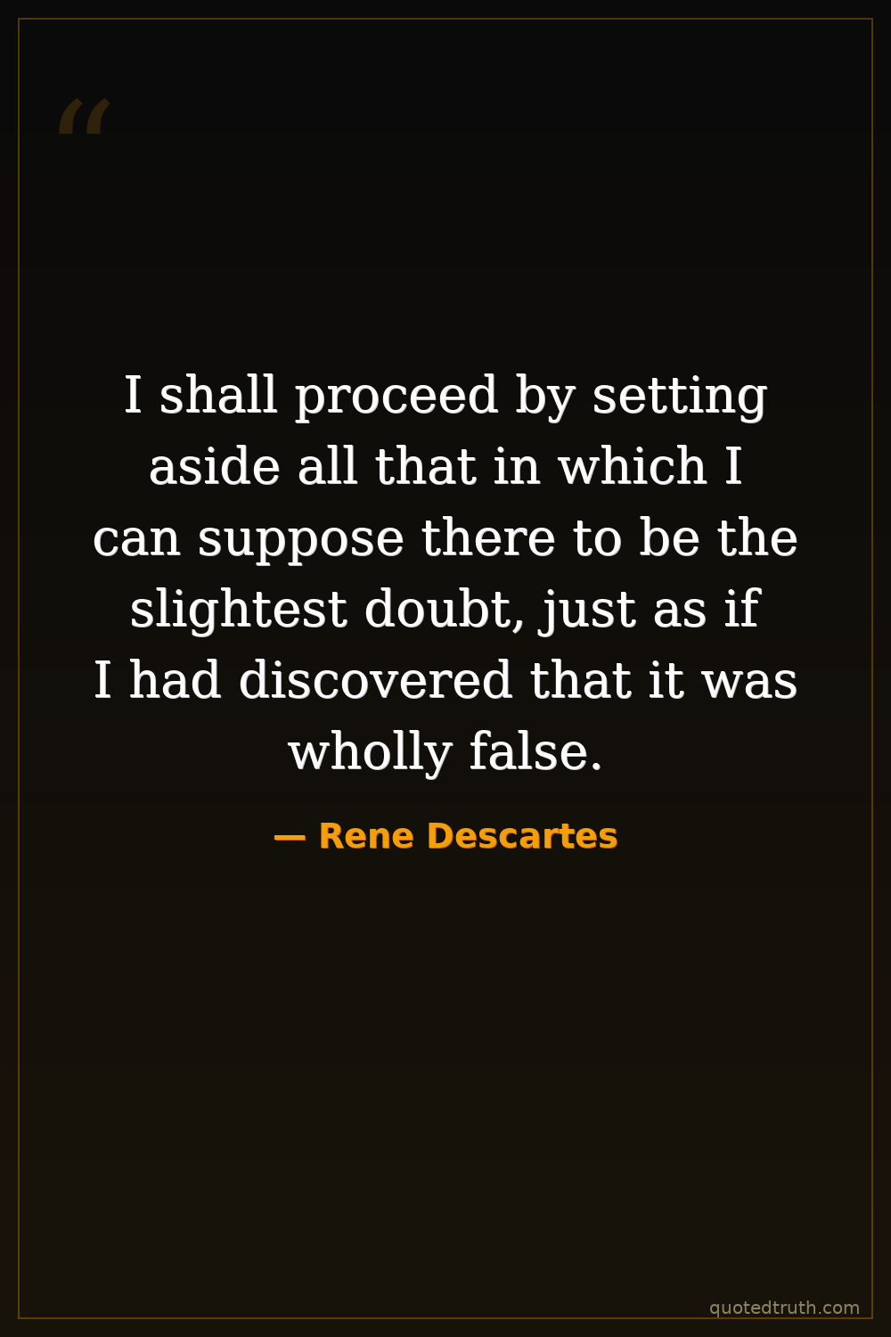 I shall proceed by setting aside all that in which I can suppose there to be the slightest doubt, just as if I had discovered that it was wholly false.
