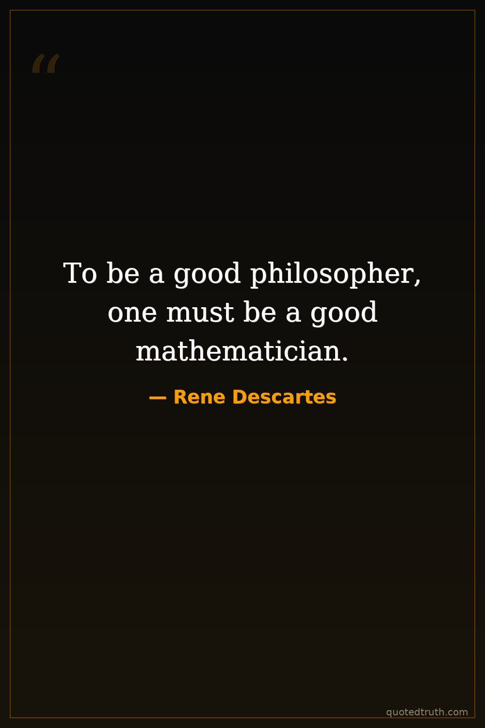 To be a good philosopher, one must be a good mathematician.
