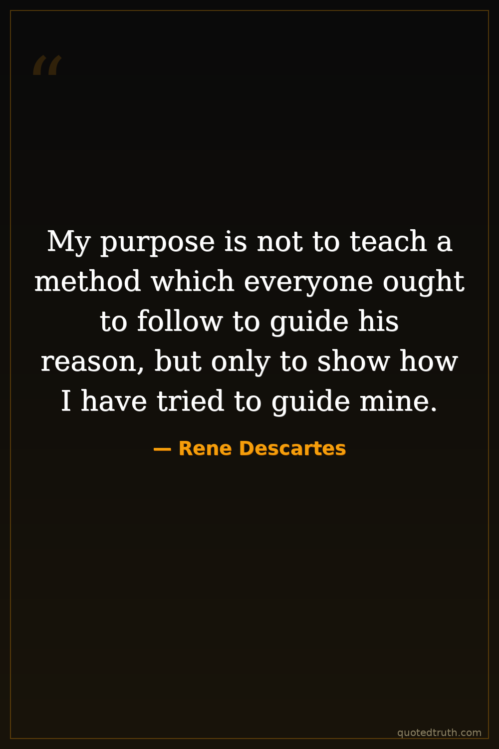 My purpose is not to teach a method which everyone ought to follow to guide his reason, but only to show how I have tried to guide mine.