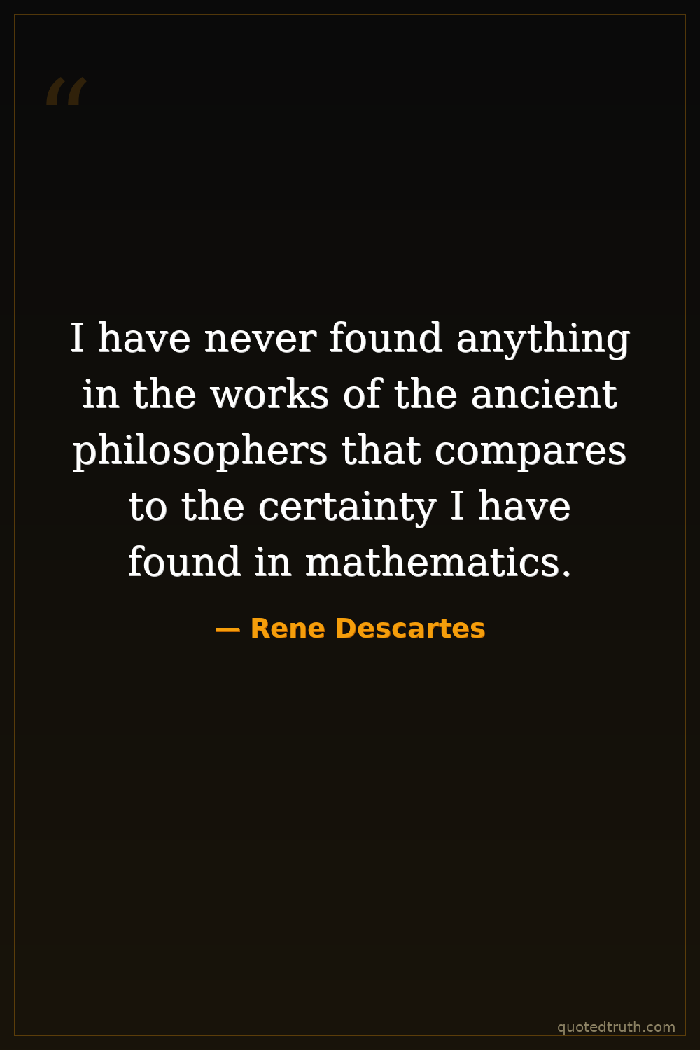 I have never found anything in the works of the ancient philosophers that compares to the certainty I have found in mathematics.