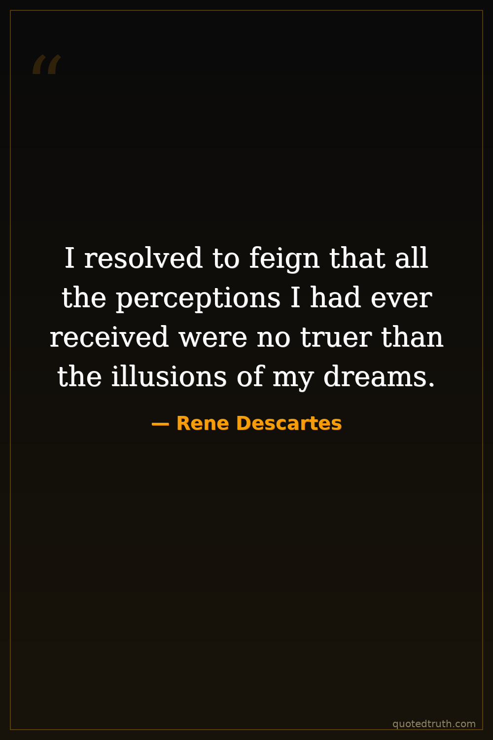 I resolved to feign that all the perceptions I had ever received were no truer than the illusions of my dreams.
