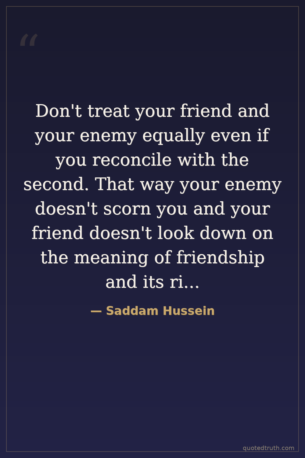 Don't treat your friend and your enemy equally even if you reconcile with the second. That way your enemy doesn't scorn you and your friend doesn't look down on the meaning of friendship and its rights.