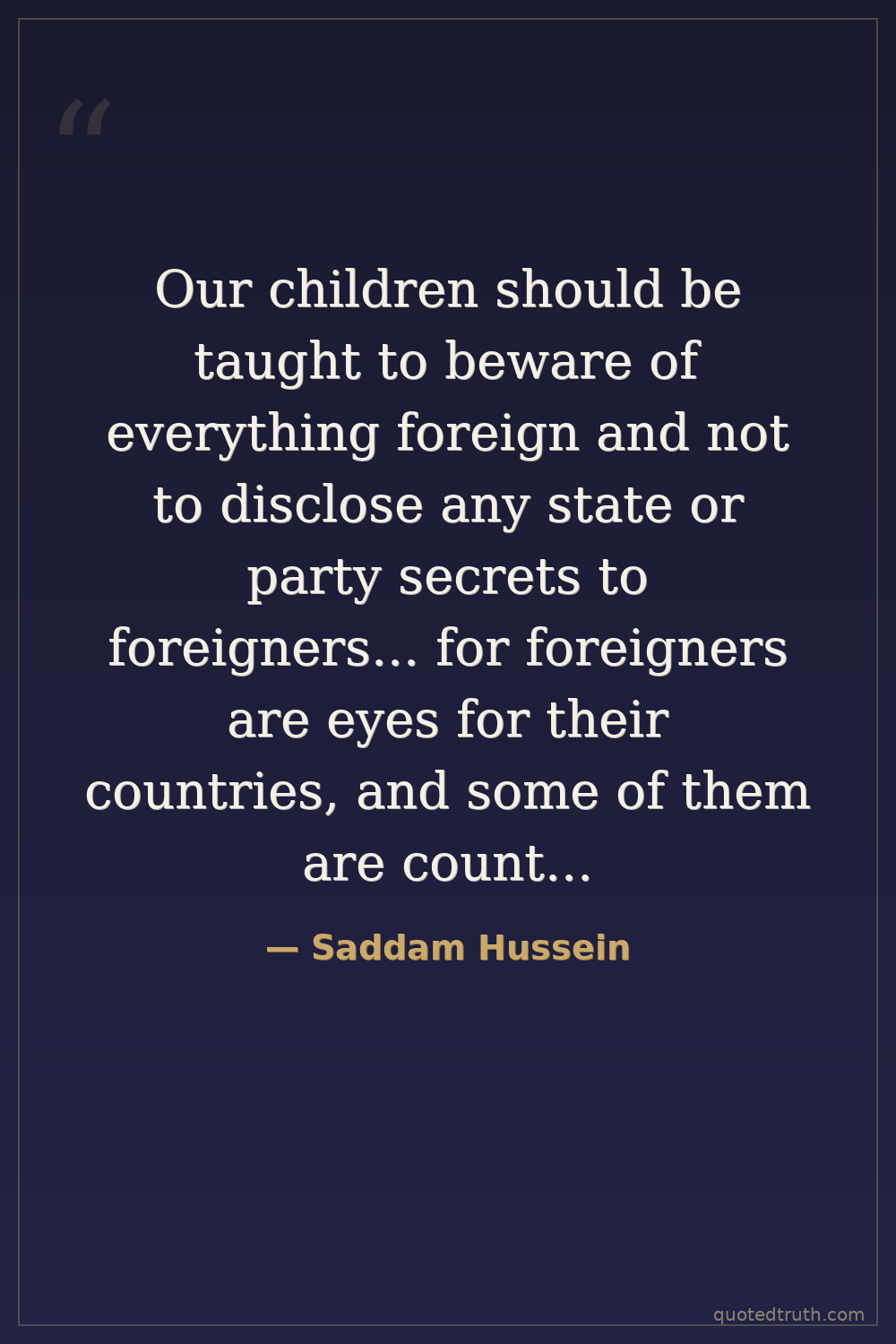 Our children should be taught to beware of everything foreign and not to disclose any state or party secrets to foreigners... for foreigners are eyes for their countries, and some of them are counterrevolutionary instruments [in the hands of imperialism].