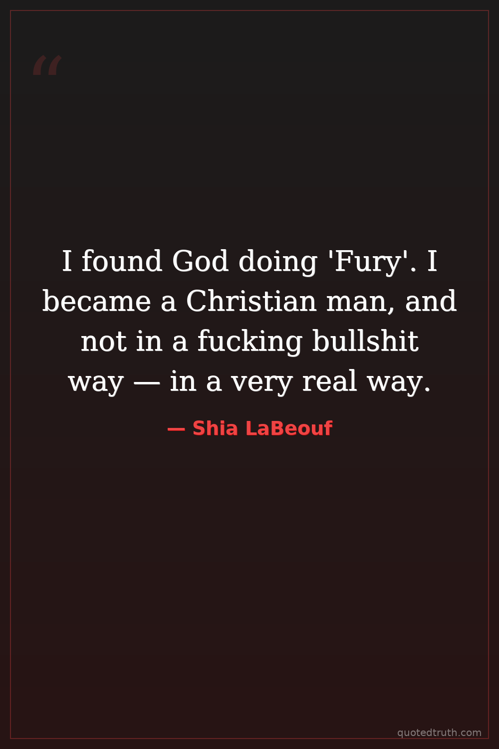 I found God doing 'Fury'. I became a Christian man, and not in a fucking bullshit way — in a very real way.
